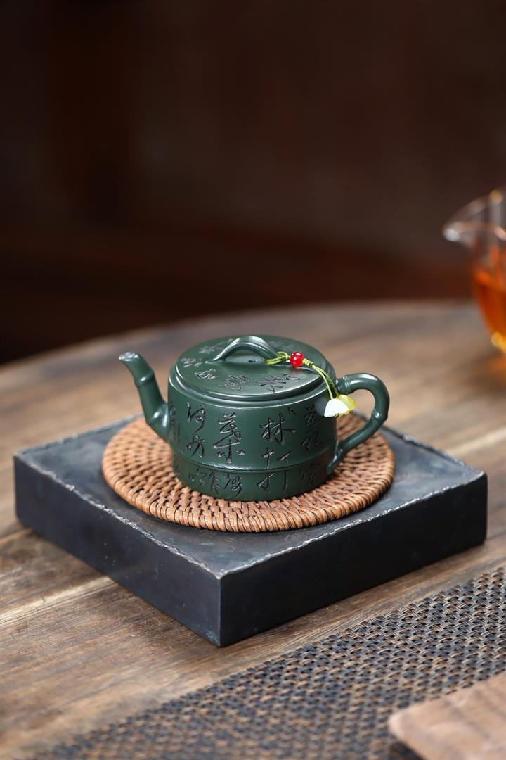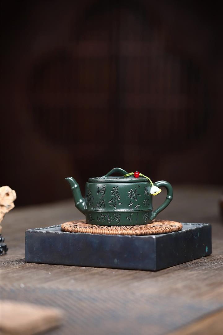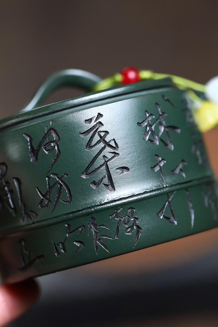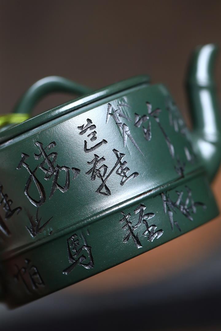 150cc原礦綠泥雙刀刻繪文心漢瓦茶壺POT9151