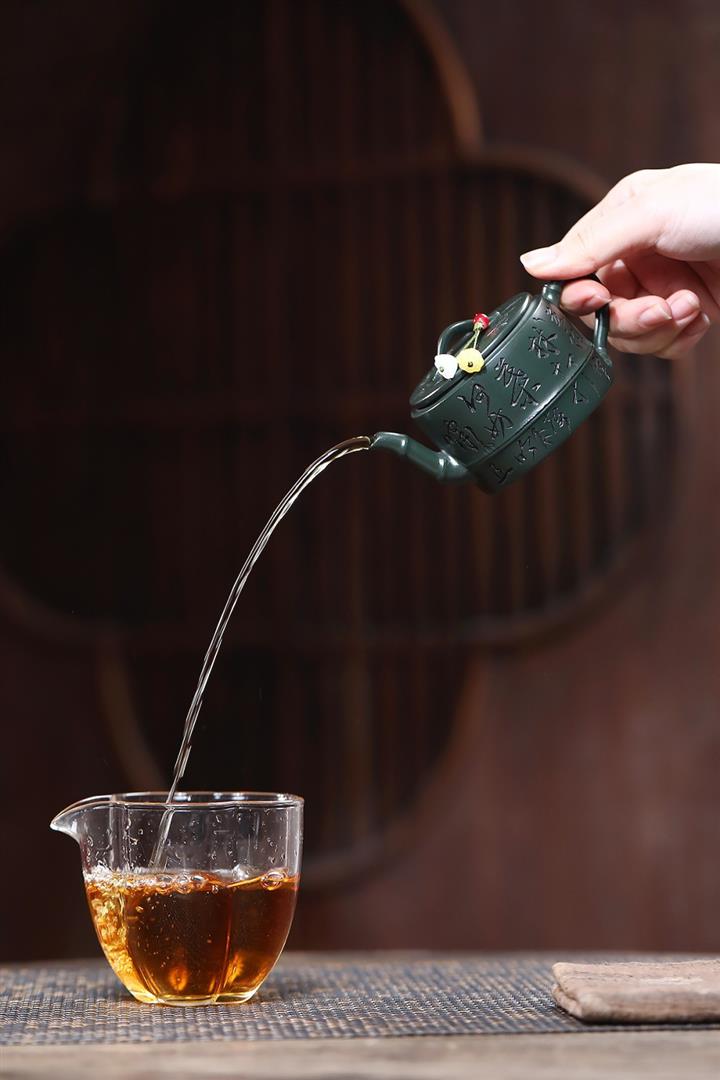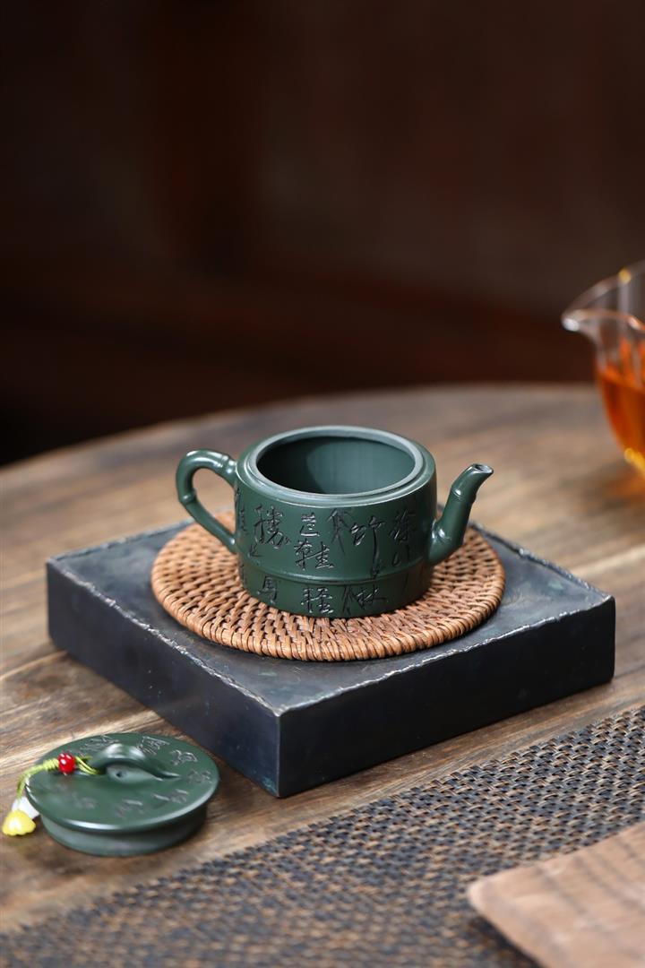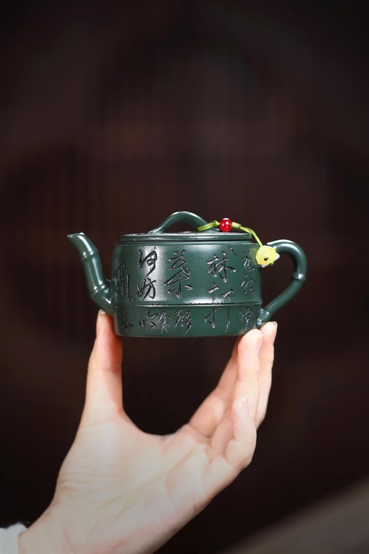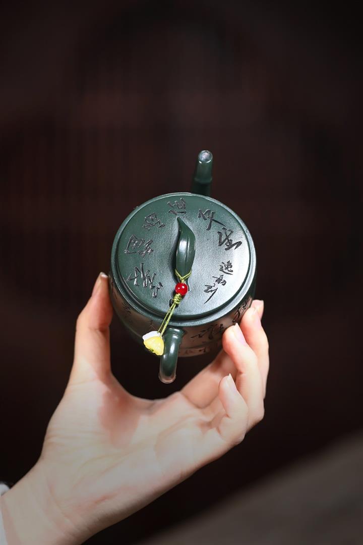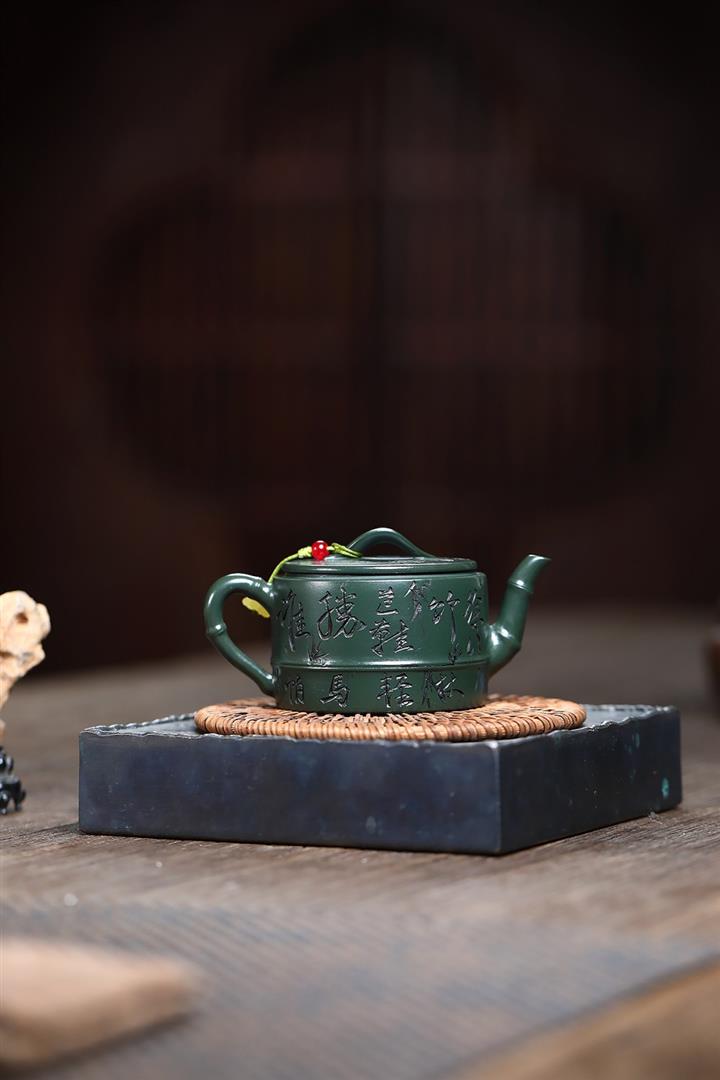 150cc原礦綠泥雙刀刻繪文心漢瓦茶壺POT9151