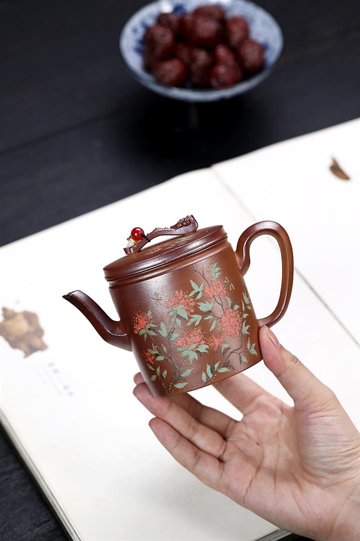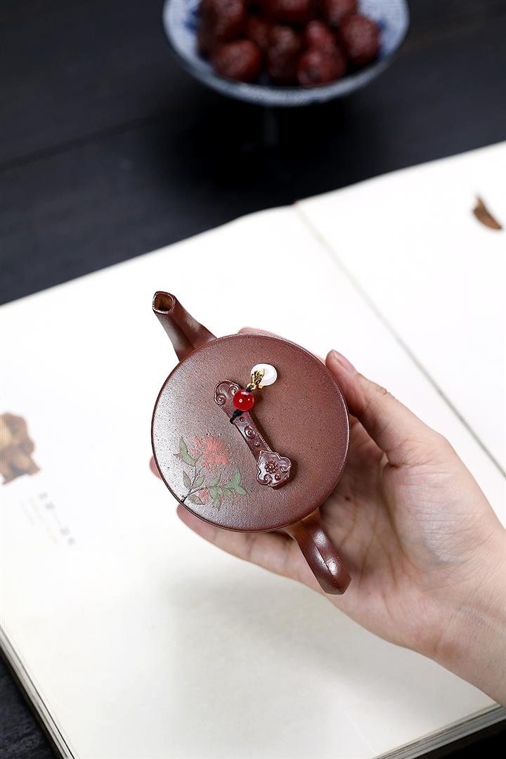 【作品介紹】此款壺形線條流暢,壺把,壺嘴,壺身壹氣呵成栩栩如生,是收藏把玩的好壺,泥料色澤古樸典雅,日久使用,漸露鋒芒,養成變化快,溫潤莊重,用其泡茶,使用的年代久,壺身就溫潤,泡出來的茶湯也就醇郁芳馨。
