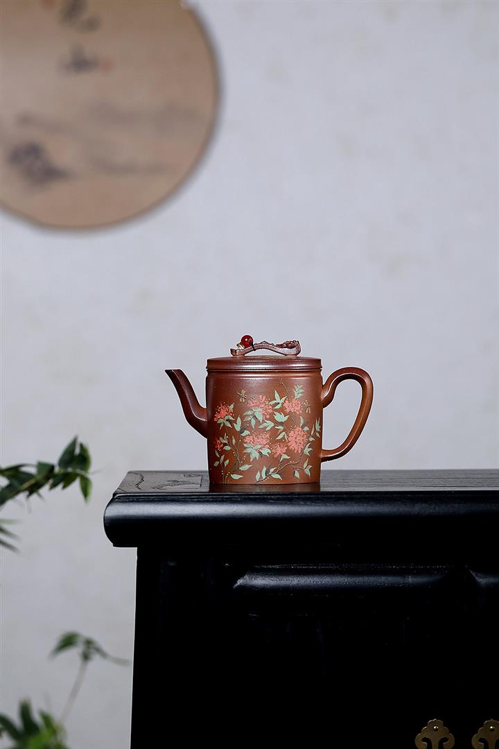 【泥料特點】砂土氣重,似淳實農民,日久使用,漸露鋒芒,養成變化,溫潤莊重。紫砂是壹種雙重氣孔結構的多孔性材質,氣孔微細,密度高。用紫砂壺沏茶,不失原味,且香不渙散,得茶之真香真味。紫砂使用越久,壺身色澤越發光亮照人,氣韻溫雅。紫砂壺長久使用器身會因撫摸擦拭,變得越發溫潤光澤。