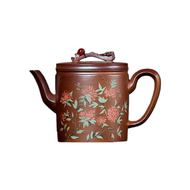 原礦綠泥刻繪花鳥竹鼎茶壺POT7569