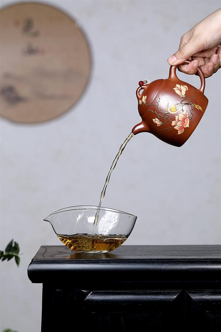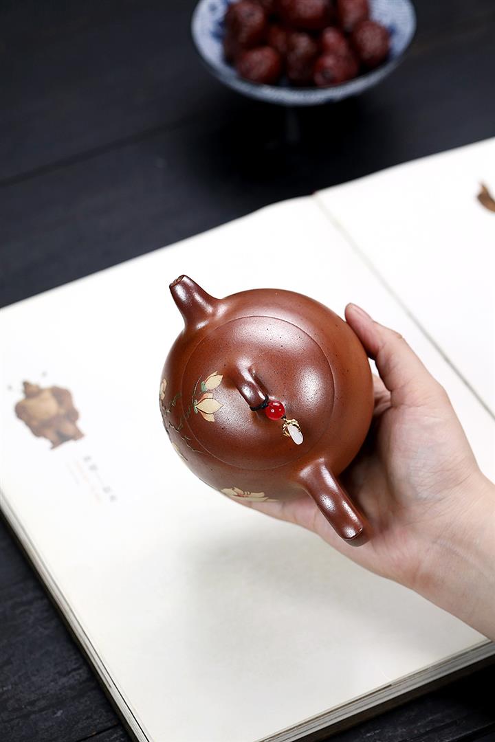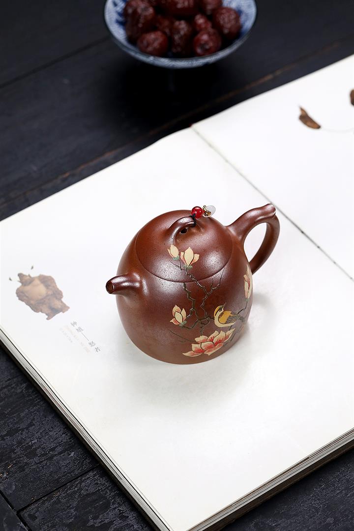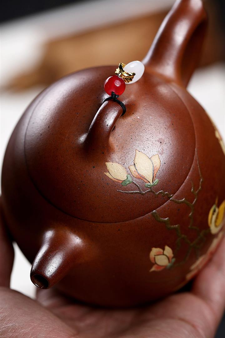 【泥料特點】砂土氣重,似淳實農民,日久使用,漸露鋒芒,養成變化,溫潤莊重。紫砂是壹種雙重氣孔結構的多孔性材質,氣孔微細,密度高。用紫砂壺沏茶,不失原味,且香不渙散,得茶之真香真味。紫砂使用越久,壺身色澤越發光亮照人,氣韻溫雅。紫砂壺長久使用器身會因撫摸擦拭,變得越發溫潤光澤。