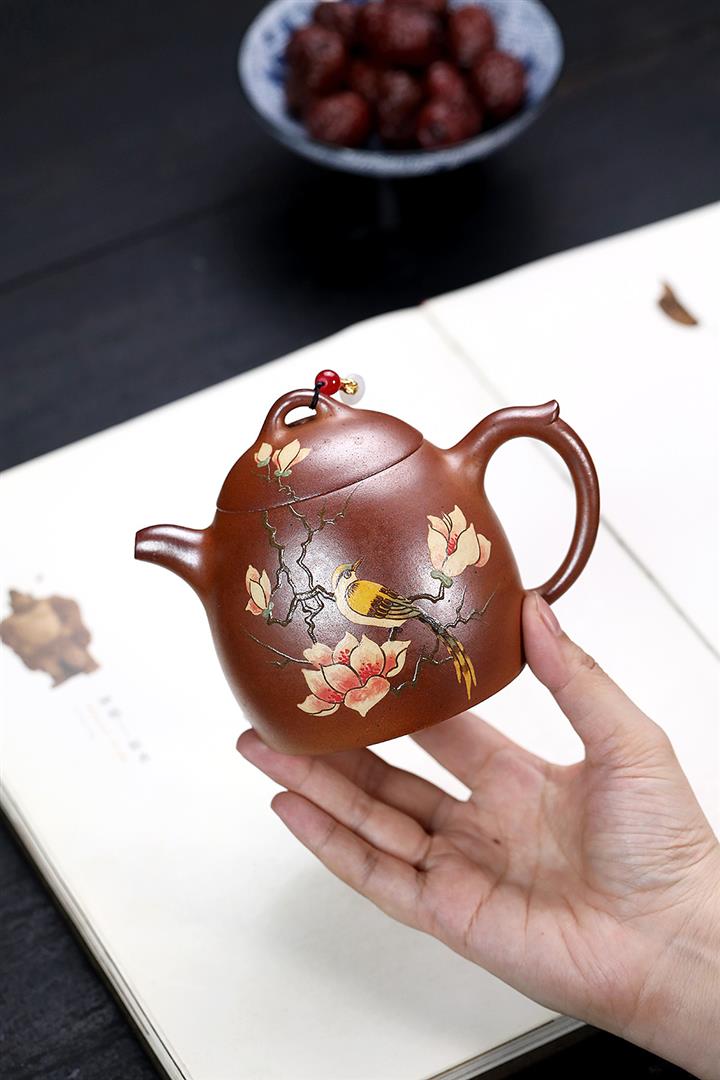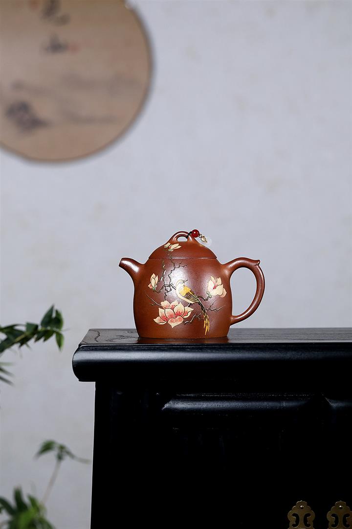 380cc原礦段泥火雲燒花鳥秦權茶壺POT9154