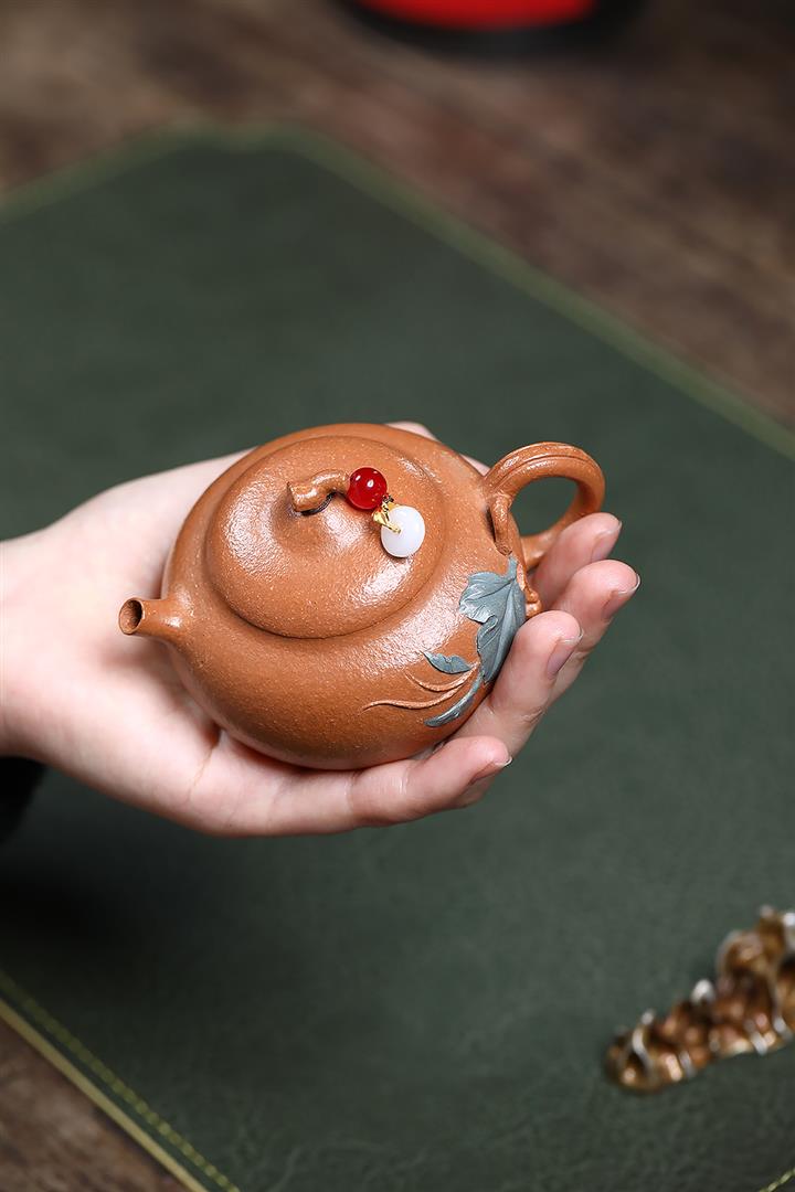【作品介紹】此款壺形線條流暢,壺把,壺嘴,壺身壹氣呵成栩栩如生,是收藏把玩的好壺,泥料色澤古樸典雅,日久使用,漸露鋒芒,養成變化快,溫潤莊重,用其泡茶,使用的年代久,壺身就溫潤,泡出來的茶湯也就醇郁芳馨。