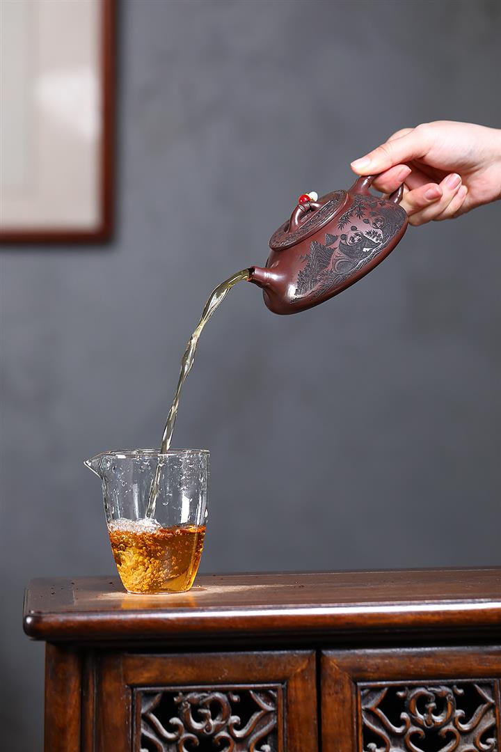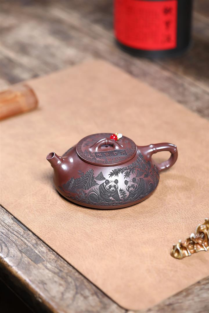 240cc原礦石紅刻繪熊貓竹瓢泡茶壺POT9161
