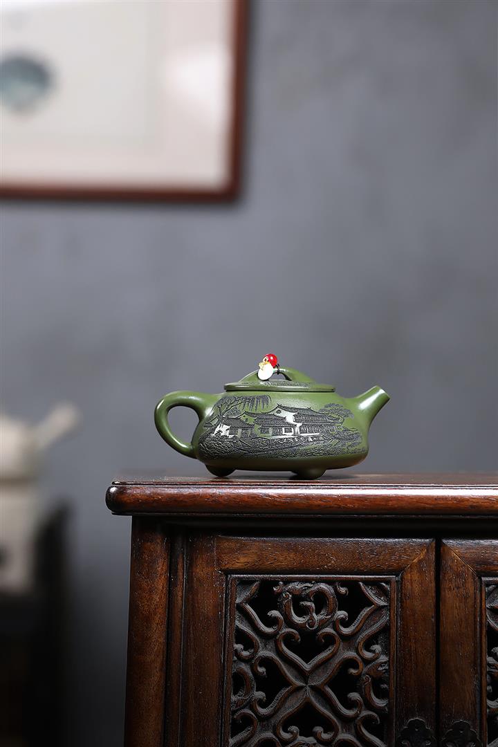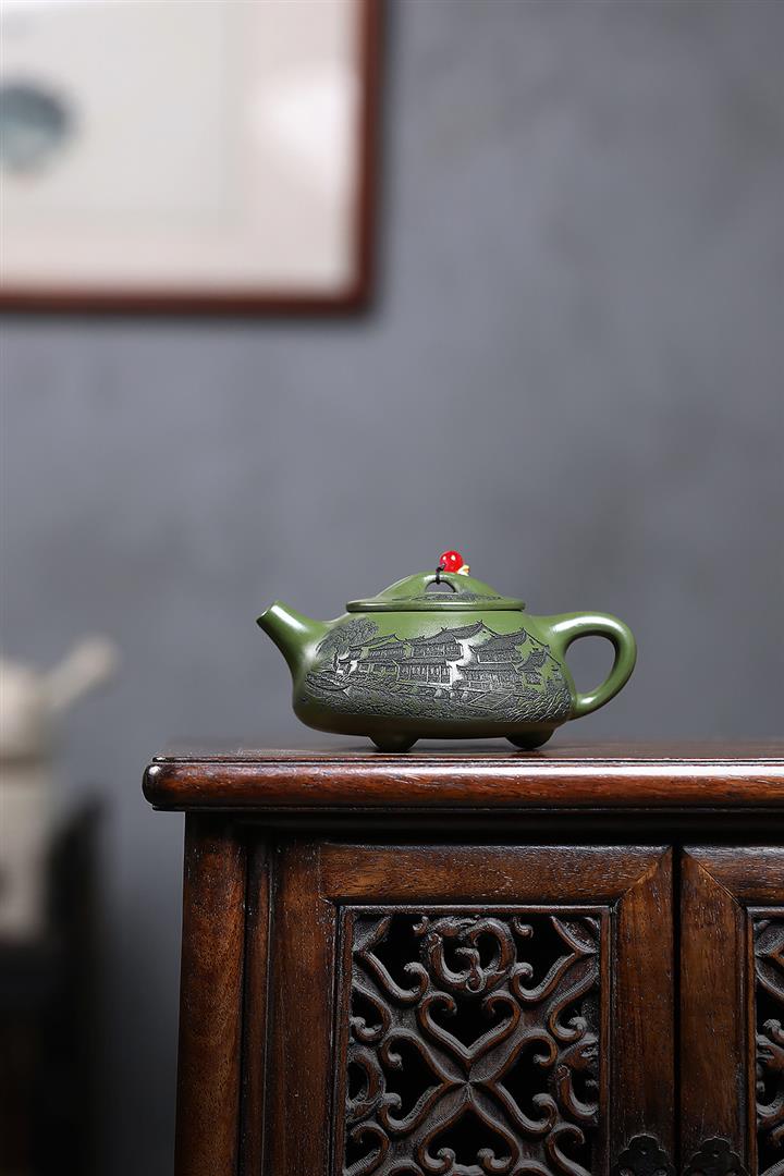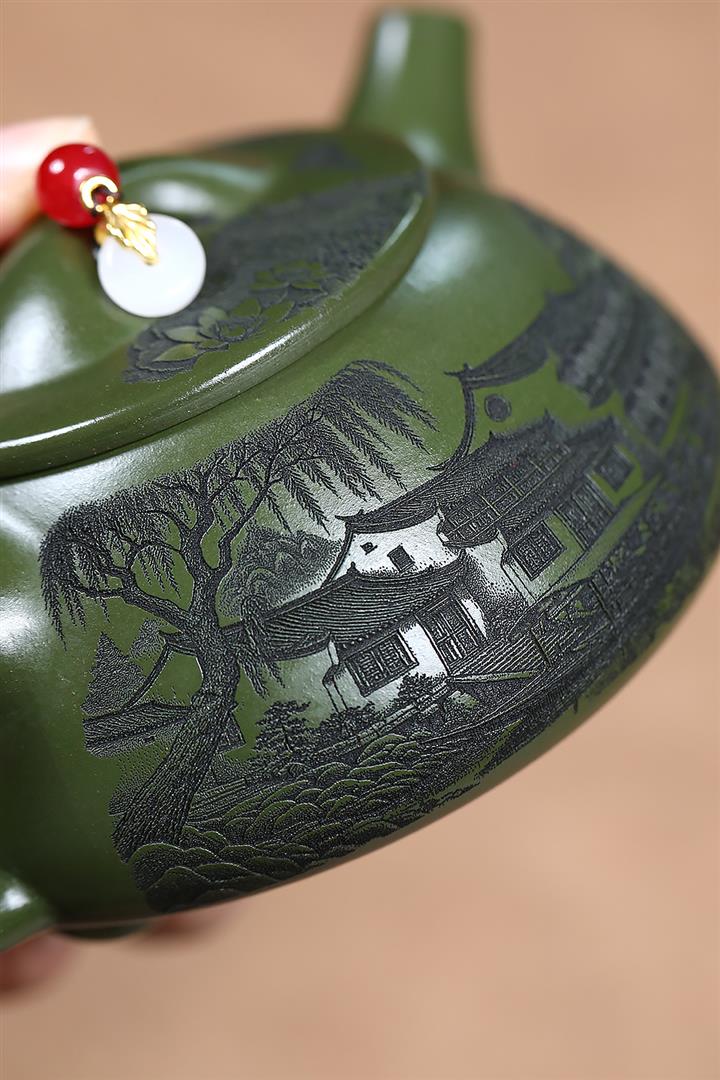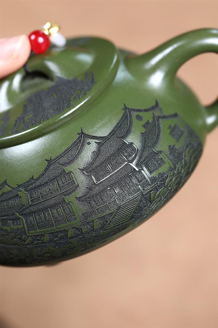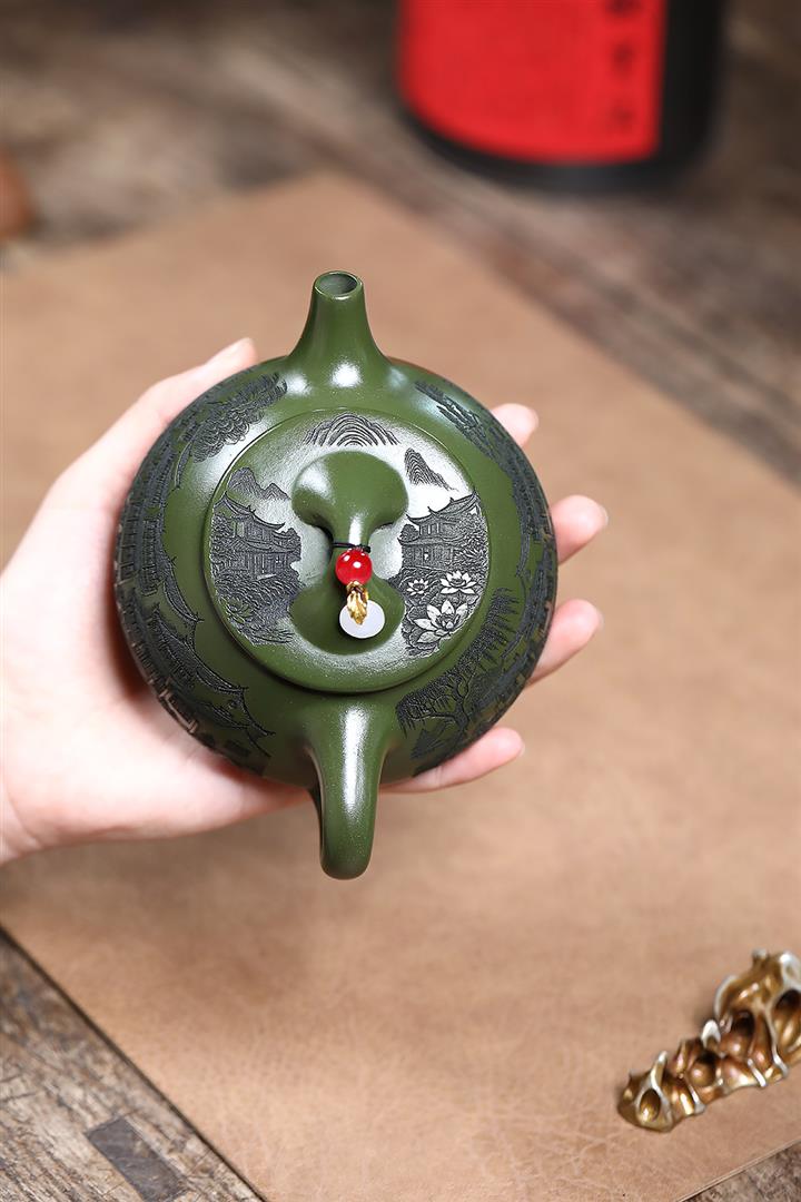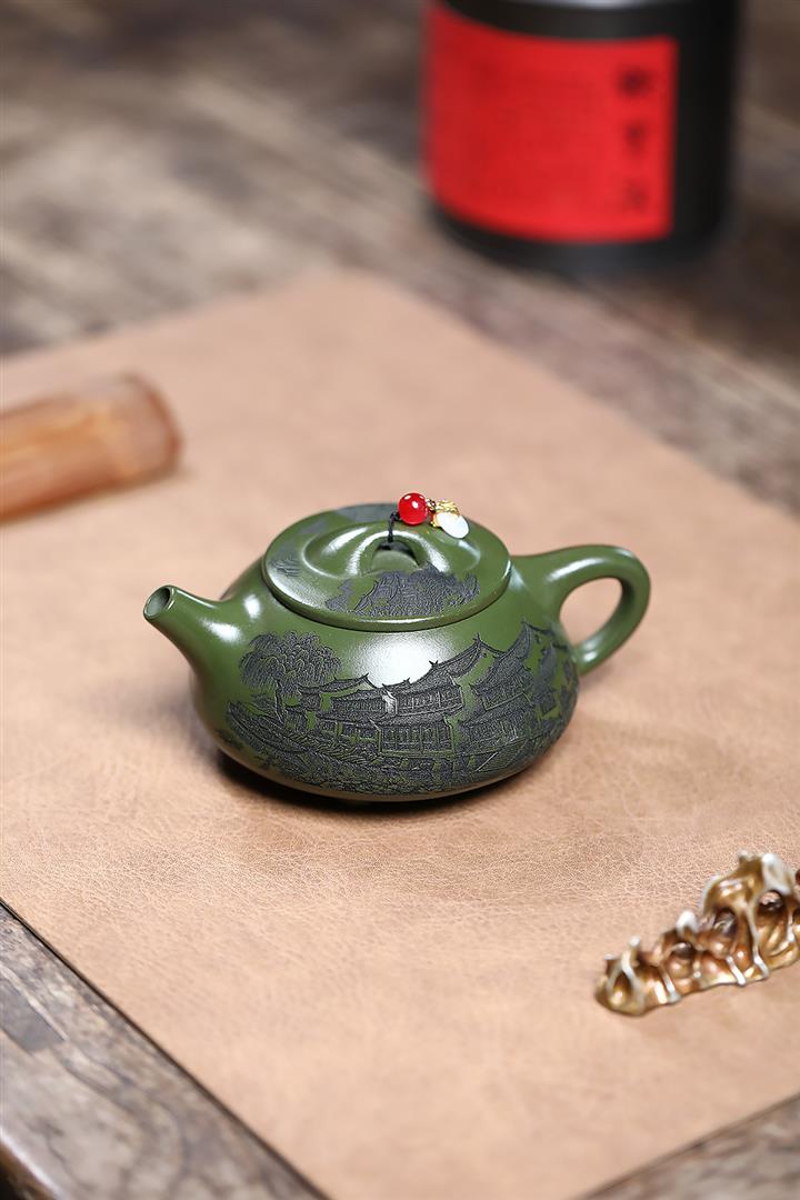 【作品介紹】此款壺形線條流暢,壺把,壺嘴,壺身壹氣呵成栩栩如生,是收藏把玩的好壺,泥料色澤古樸典雅,日久使用,漸露鋒芒,養成變化快,溫潤莊重,用其泡茶,使用的年代久,壺身就溫潤,泡出來的茶湯也就醇郁芳馨。