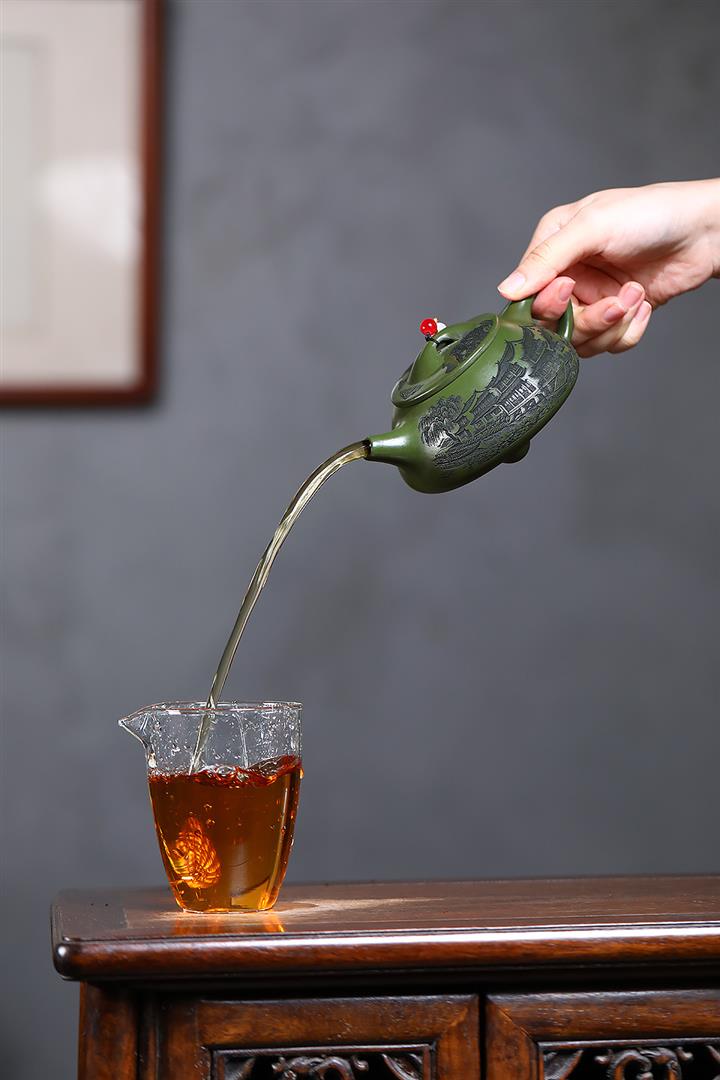 【泥料特點】砂土氣重,似淳實農民,日久使用,漸露鋒芒,養成變化,溫潤莊重。紫砂是壹種雙重氣孔結構的多孔性材質,氣孔微細,密度高。用紫砂壺沏茶,不失原味,且香不渙散,得茶之真香真味。紫砂使用越久,壺身色澤越發光亮照人,氣韻溫雅。紫砂壺長久使用器身會因撫摸擦拭,變得越發溫潤光澤。