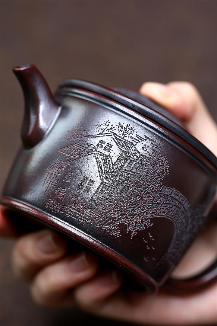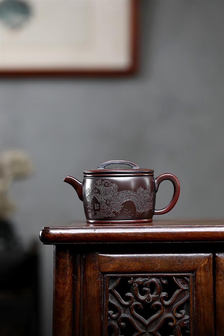 【作品介紹】此款壺形線條流暢,壺把,壺嘴,壺身壹氣呵成栩栩如生,是收藏把玩的好壺,泥料色澤古樸典雅,日久使用,漸露鋒芒,養成變化快,溫潤莊重,用其泡茶,使用的年代久,壺身就溫潤,泡出來的茶湯也就醇郁芳馨。
