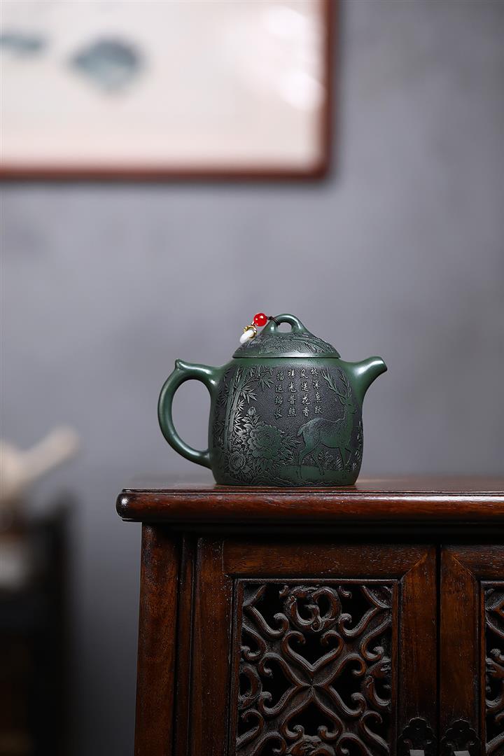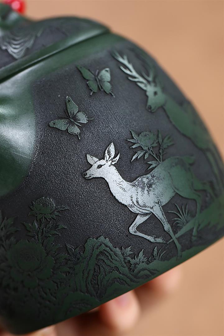 360cc原礦墨綠泥福鹿秦權茶壺POT9172