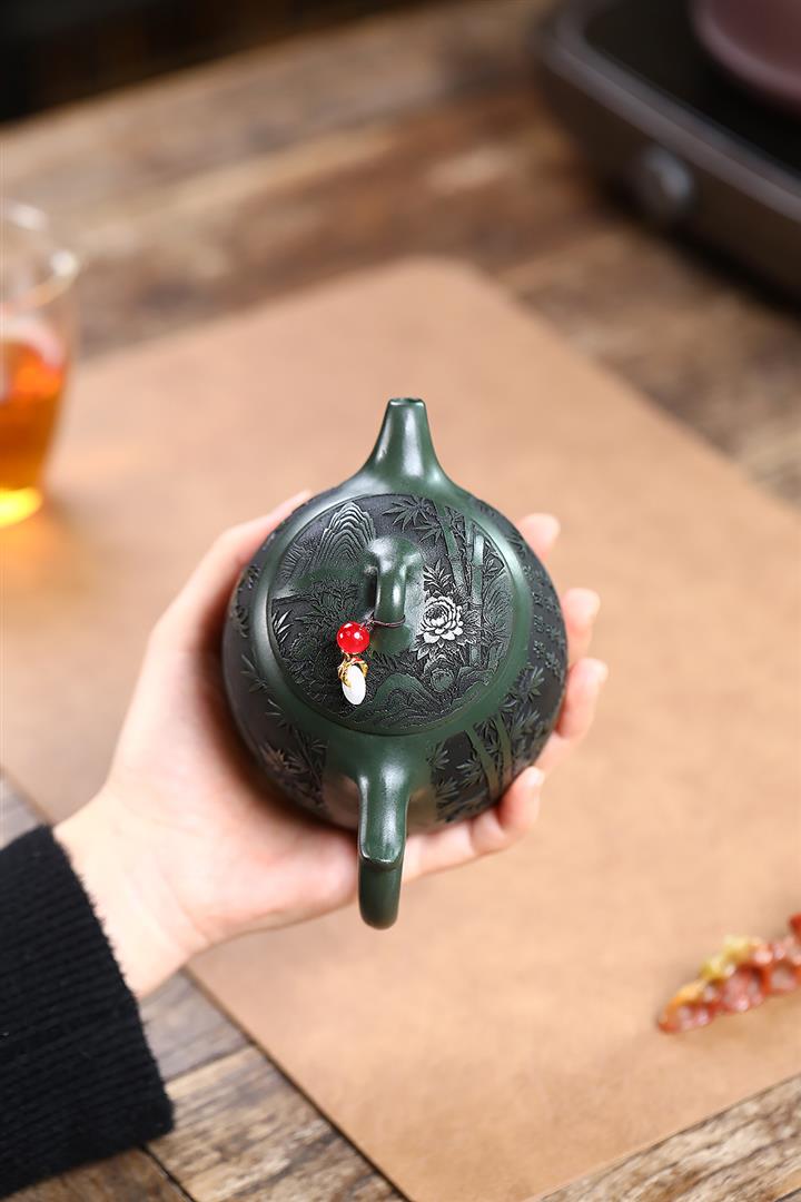 400cc原礦綠泥竹鼎熊韻茶壺POT8747