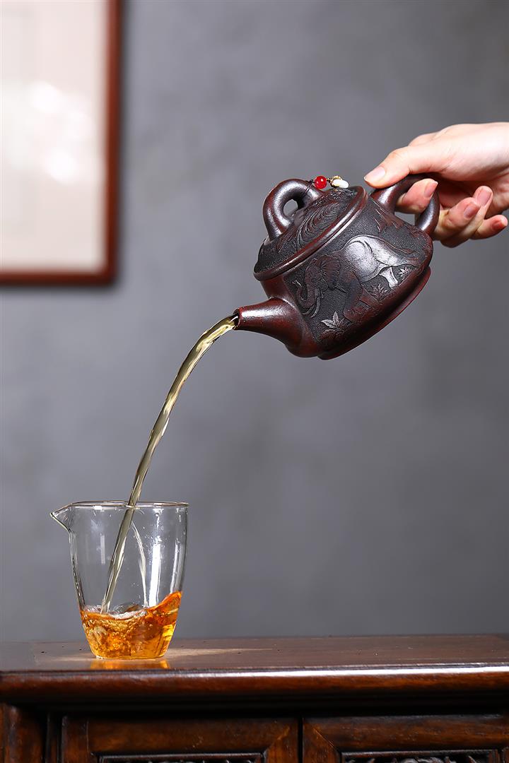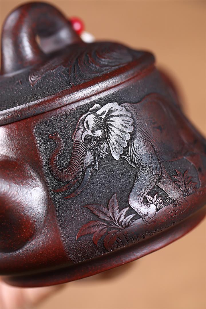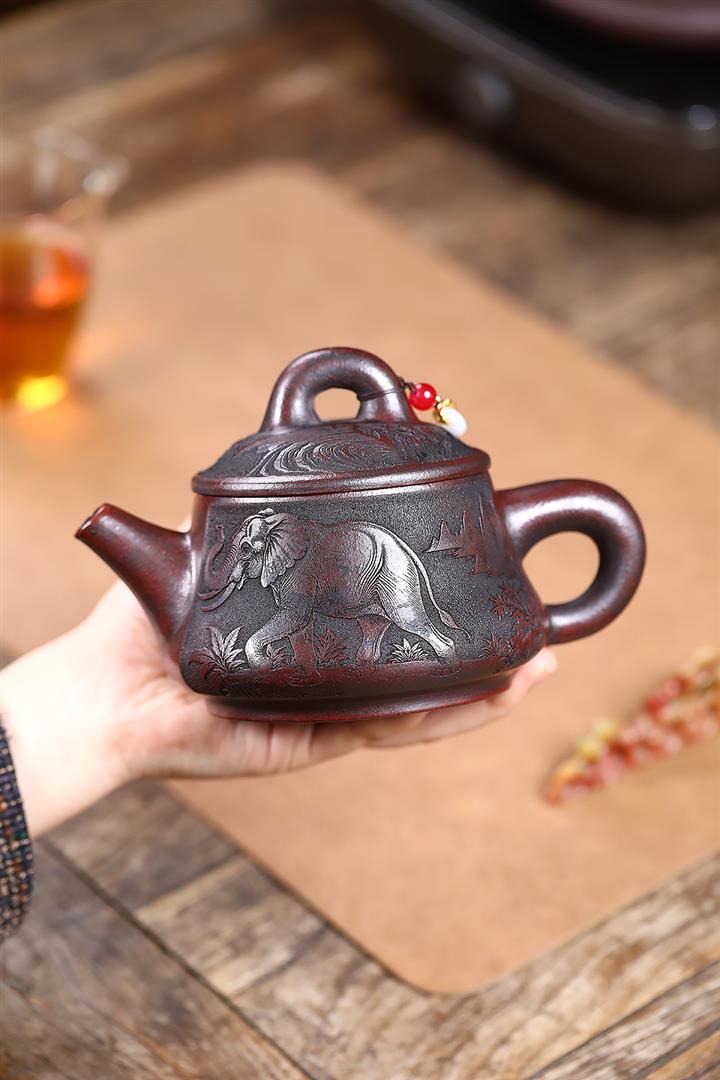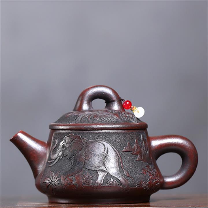 原礦養生石黃器象古鐘紫砂壺POT5872
