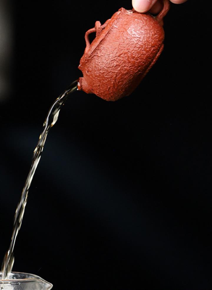 【泥料特點】砂土氣重,似淳實農民,日久使用,漸露鋒芒,養成變化,溫潤莊重。紫砂是壹種雙重氣孔結構的多孔性材質,氣孔微細,密度高。用紫砂壺沏茶,不失原味,且香不渙散,得茶之真香真味。紫砂使用越久,壺身色澤越發光亮照人,氣韻溫雅。紫砂壺長久使用器身會因撫摸擦拭,變得越發溫潤光澤。