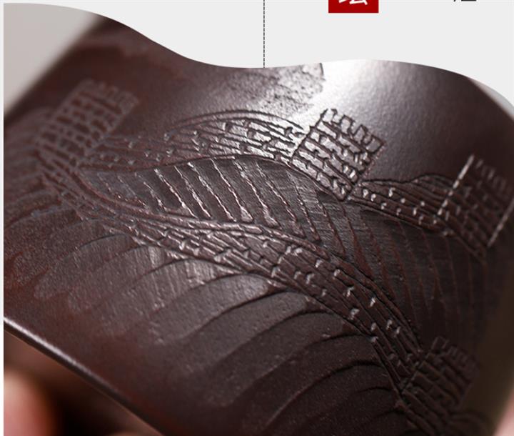 【泥料特點】砂土氣重,似淳實農民,日久使用,漸露鋒芒,養成變化,溫潤莊重。紫砂是壹種雙重氣孔結構的多孔性材質,氣孔微細,密度高。用紫砂壺沏茶,不失原味,且香不渙散,得茶之真香真味。紫砂使用越久,壺身色澤越發光亮照人,氣韻溫雅。紫砂壺長久使用器身會因撫摸擦拭,變得越發溫潤光澤。