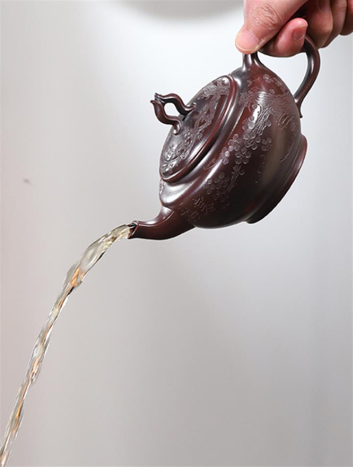 【作品介紹】此款壺形線條流暢,壺把,壺嘴,壺身壹氣呵成栩栩如生,是收藏把玩的好壺,泥料色澤古樸典雅,日久使用,漸露鋒芒,養成變化快,溫潤莊重,用其泡茶,使用的年代久,壺身就溫潤,泡出來的茶湯也就醇郁芳馨。