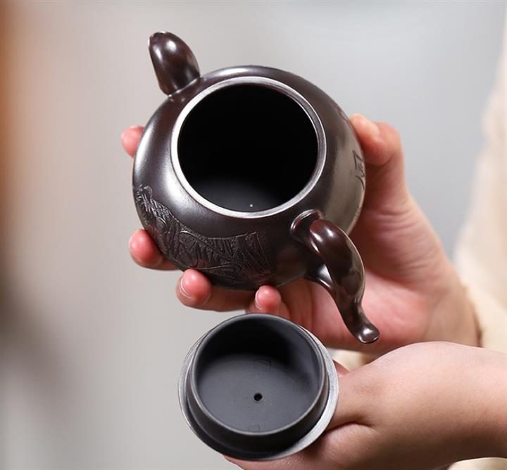 【泥料特點】砂土氣重,似淳實農民,日久使用,漸露鋒芒,養成變化,溫潤莊重。紫砂是壹種雙重氣孔結構的多孔性材質,氣孔微細,密度高。用紫砂壺沏茶,不失原味,且香不渙散,得茶之真香真味。紫砂使用越久,壺身色澤越發光亮照人,氣韻溫雅。紫砂壺長久使用器身會因撫摸擦拭,變得越發溫潤光澤。