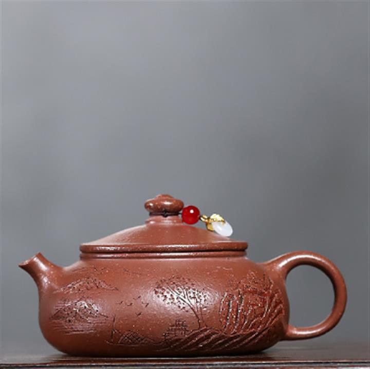340cc原礦紫泥刻繪山水仿古泡茶壺POT9444