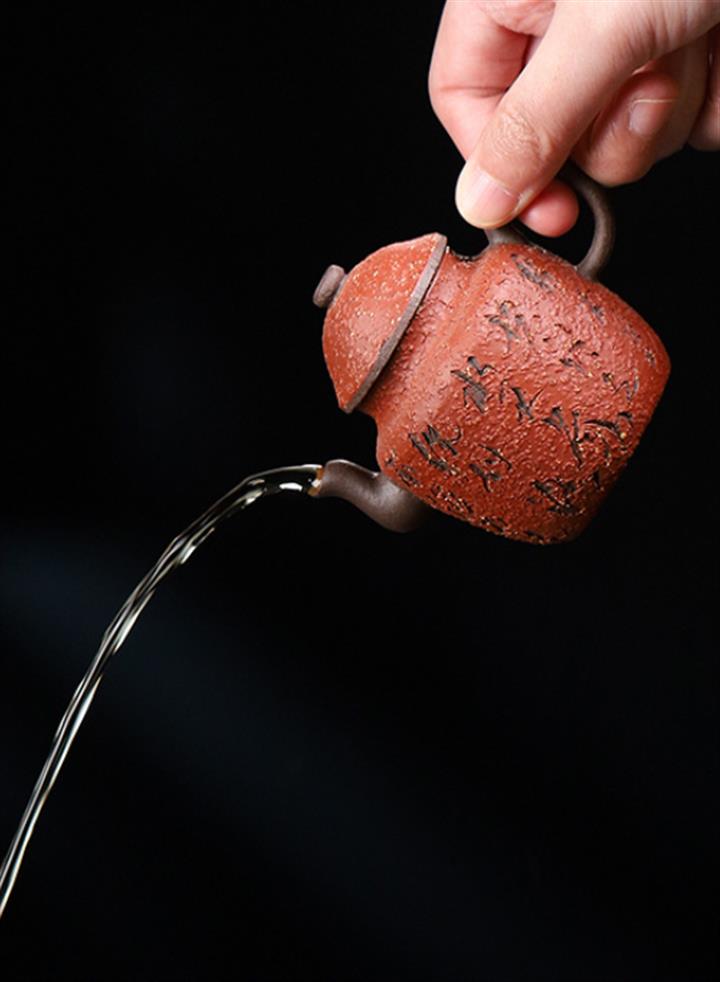 【泥料特點】砂土氣重,似淳實農民,日久使用,漸露鋒芒,養成變化,溫潤莊重。紫砂是壹種雙重氣孔結構的多孔性材質,氣孔微細,密度高。用紫砂壺沏茶,不失原味,且香不渙散,得茶之真香真味。紫砂使用越久,壺身色澤越發光亮照人,氣韻溫雅。紫砂壺長久使用器身會因撫摸擦拭,變得越發溫潤光澤。