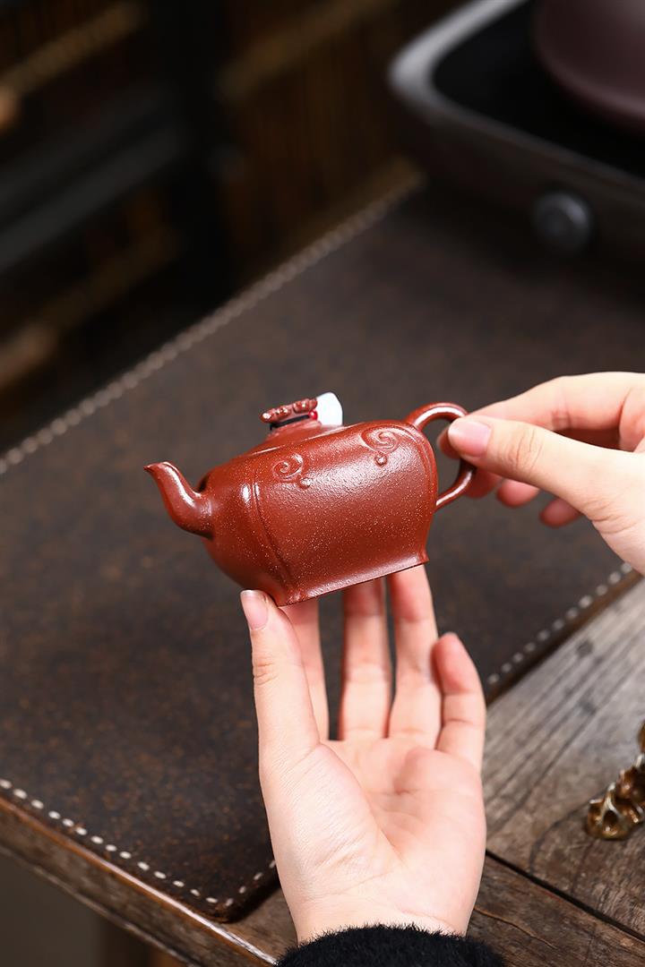 200cc原礦古紅泥遊龍戲鳳漢瓦茶壺POT8676