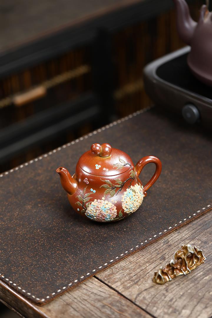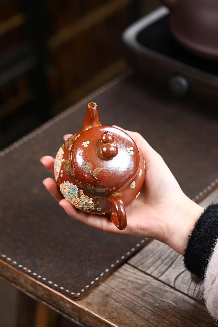 250cc原礦段泥火雲燒繁花葫蘆茶壺POT9192