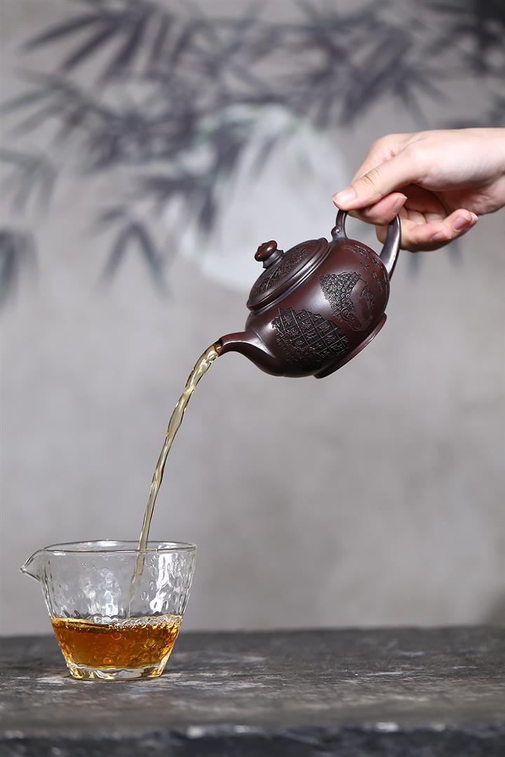 280cc原礦古烏泥刻繪般若禪韻飛把茶壺POT9197