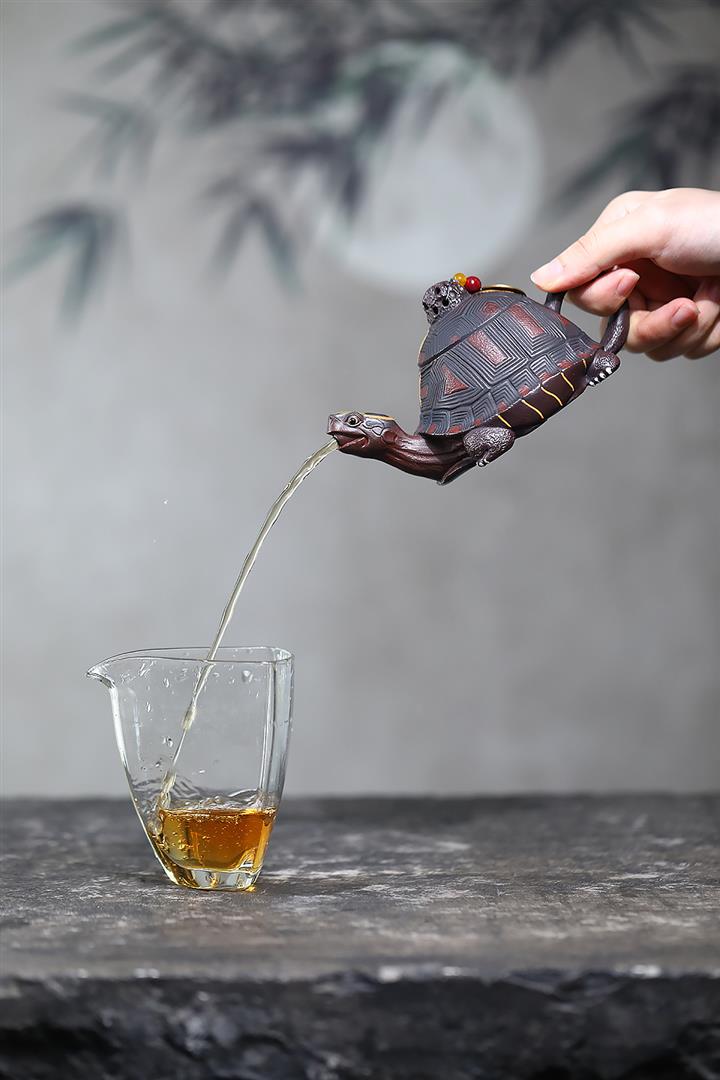 【泥料特點】砂土氣重,似淳實農民,日久使用,漸露鋒芒,養成變化,溫潤莊重。紫砂是壹種雙重氣孔結構的多孔性材質,氣孔微細,密度高。用紫砂壺沏茶,不失原味,且香不渙散,得茶之真香真味。紫砂使用越久,壺身色澤越發光亮照人,氣韻溫雅。紫砂壺長久使用器身會因撫摸擦拭,變得越發溫潤光澤。