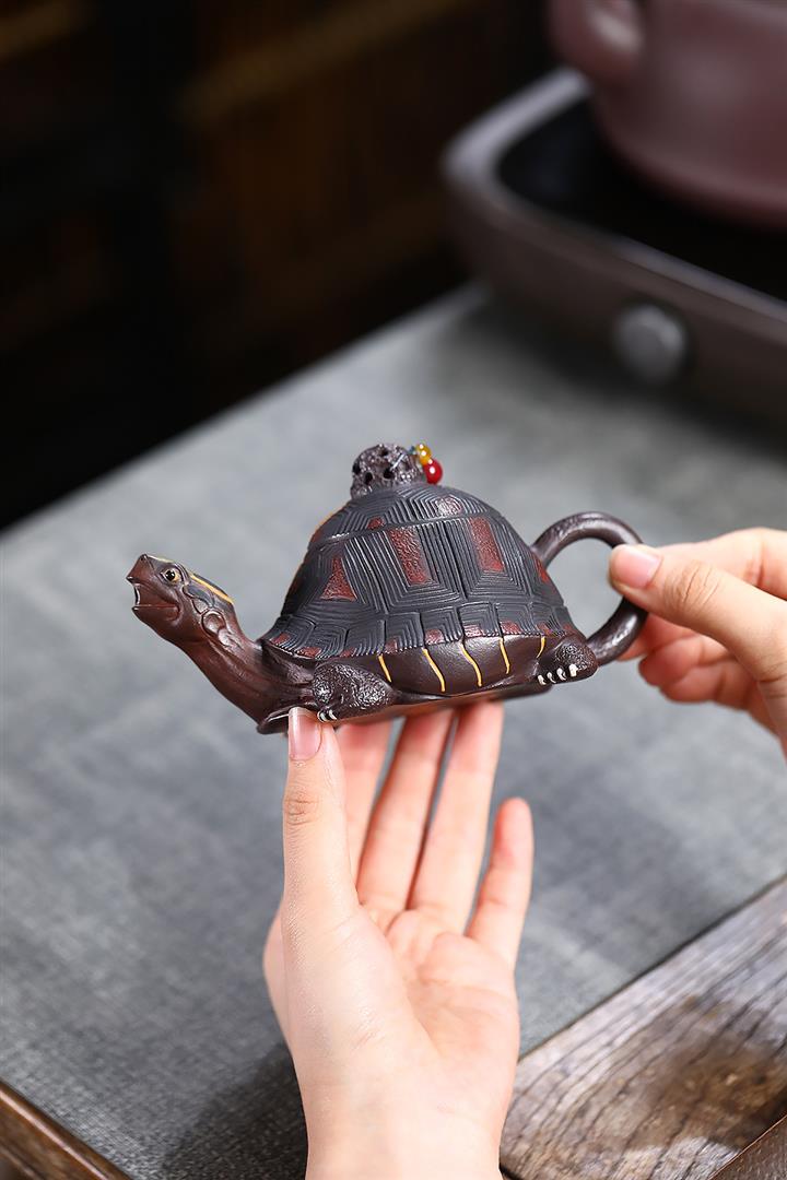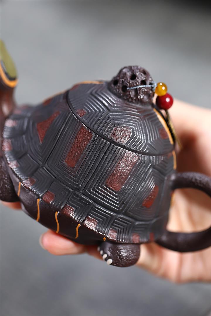 【作品介紹】此款壺形線條流暢,壺把,壺嘴,壺身壹氣呵成栩栩如生,是收藏把玩的好壺,泥料色澤古樸典雅,日久使用,漸露鋒芒,養成變化快,溫潤莊重,用其泡茶,使用的年代久,壺身就溫潤,泡出來的茶湯也就醇郁芳馨。