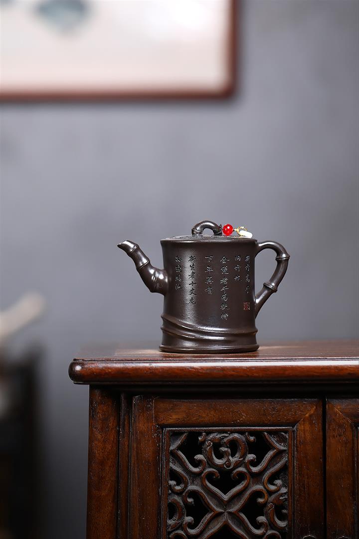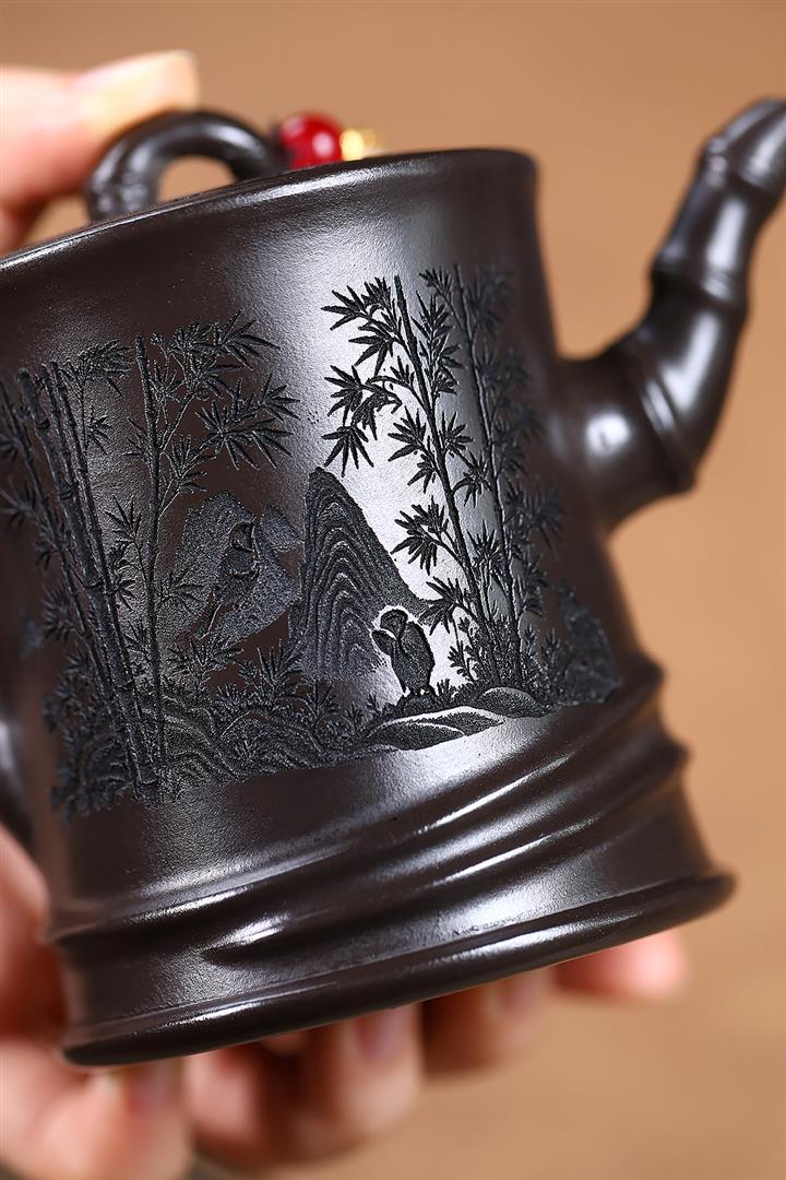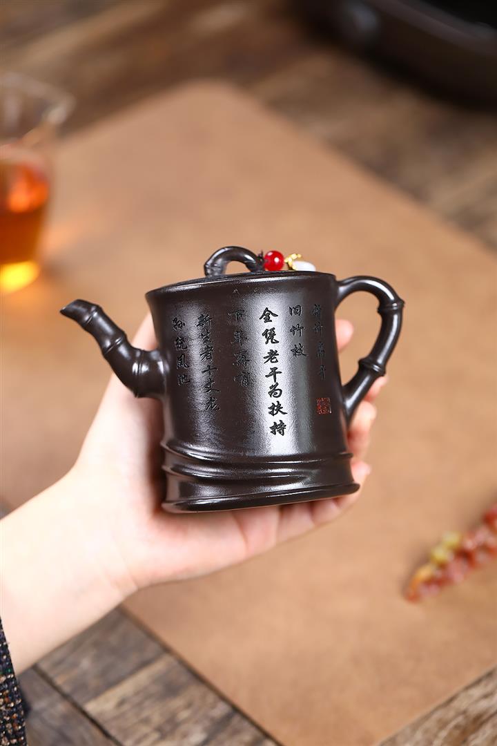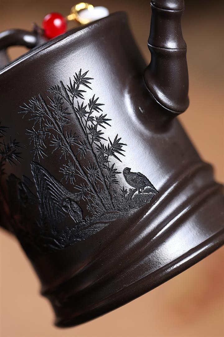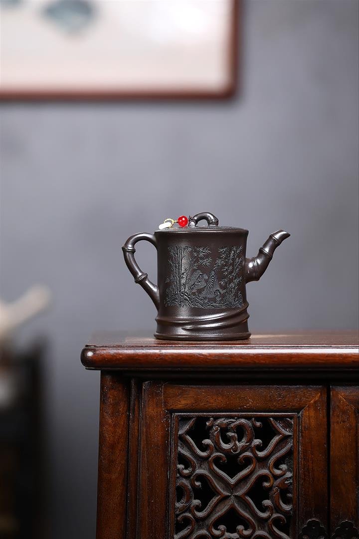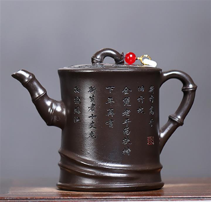 原礦青灰段翠竹紫砂壺POT5897