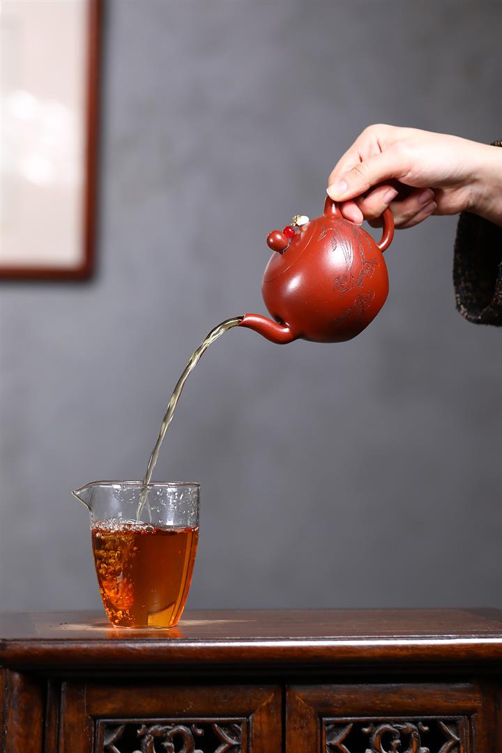 【泥料特點】砂土氣重,似淳實農民,日久使用,漸露鋒芒,養成變化,溫潤莊重。紫砂是壹種雙重氣孔結構的多孔性材質,氣孔微細,密度高。用紫砂壺沏茶,不失原味,且香不渙散,得茶之真香真味。紫砂使用越久,壺身色澤越發光亮照人,氣韻溫雅。紫砂壺長久使用器身會因撫摸擦拭,變得越發溫潤光澤。