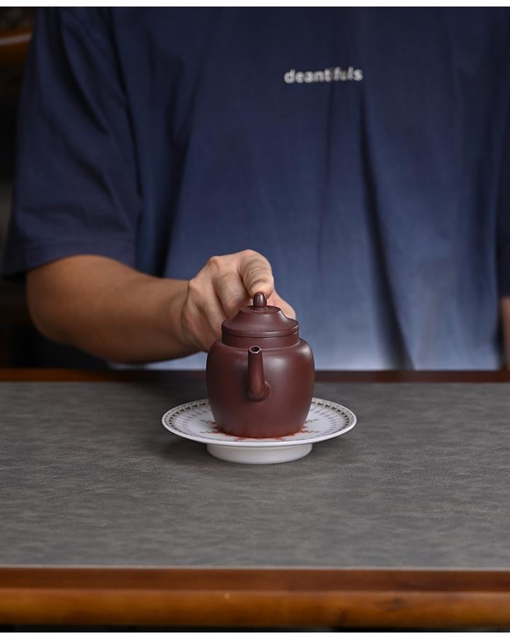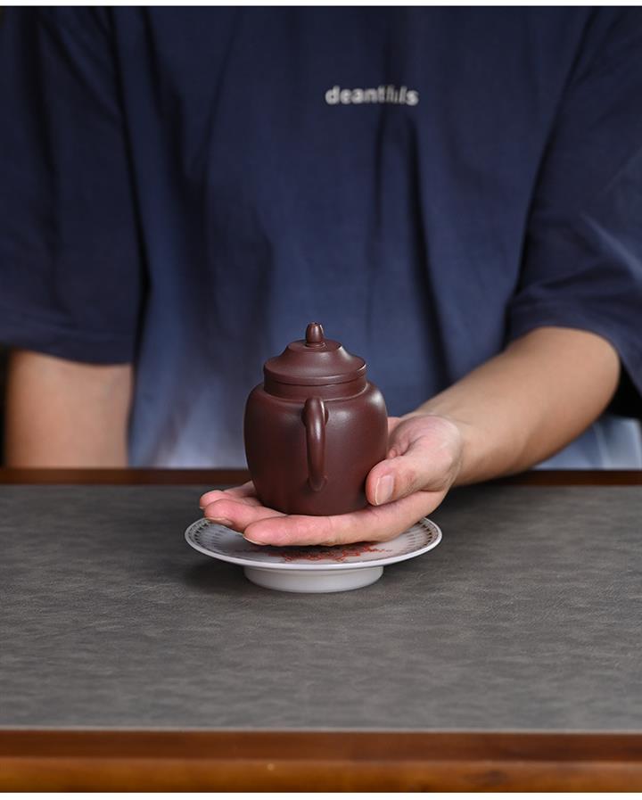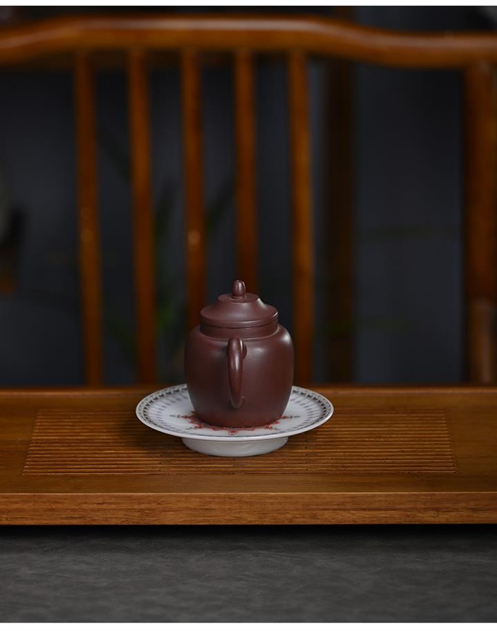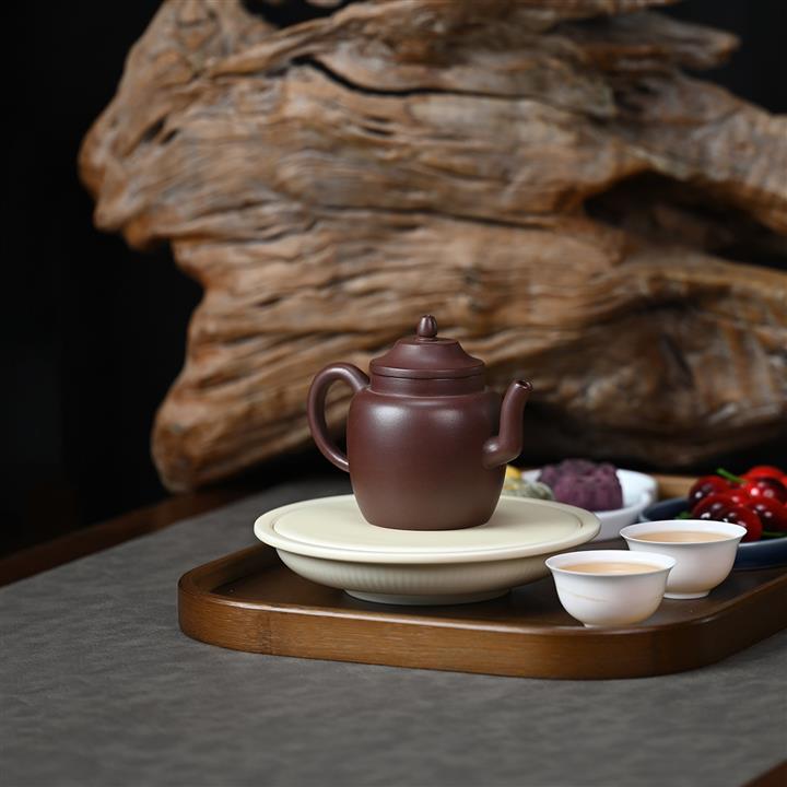 【泥料特點】砂土氣重,似淳實農民,日久使用,漸露鋒芒,養成變化,溫潤莊重。紫砂是壹種雙重氣孔結構的多孔性材質,氣孔微細,密度高。用紫砂壺沏茶,不失原味,且香不渙散,得茶之真香真味。紫砂使用越久,壺身色澤越發光亮照人,氣韻溫雅。紫砂壺長久使用器身會因撫摸擦拭,變得越發溫潤光澤。