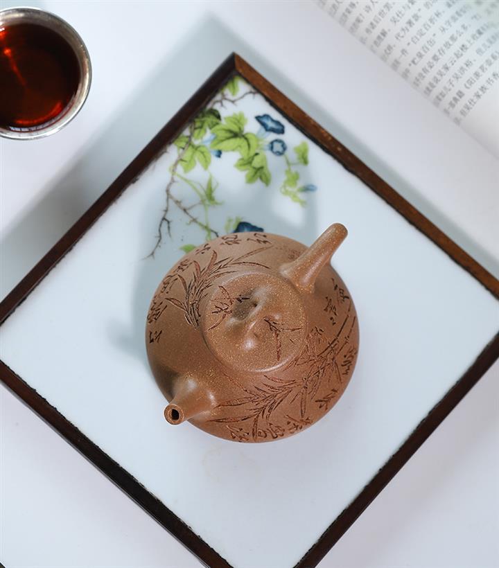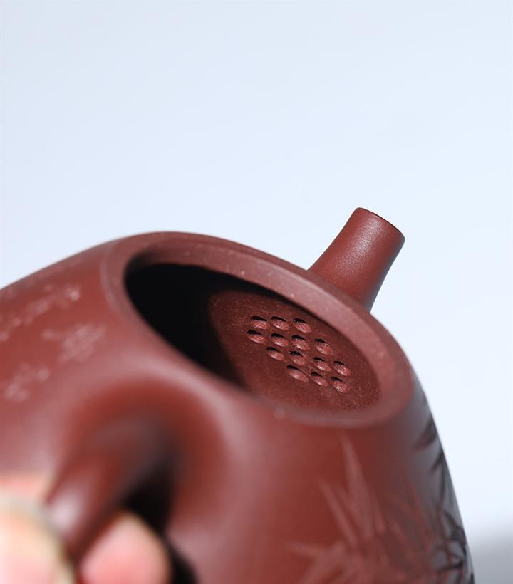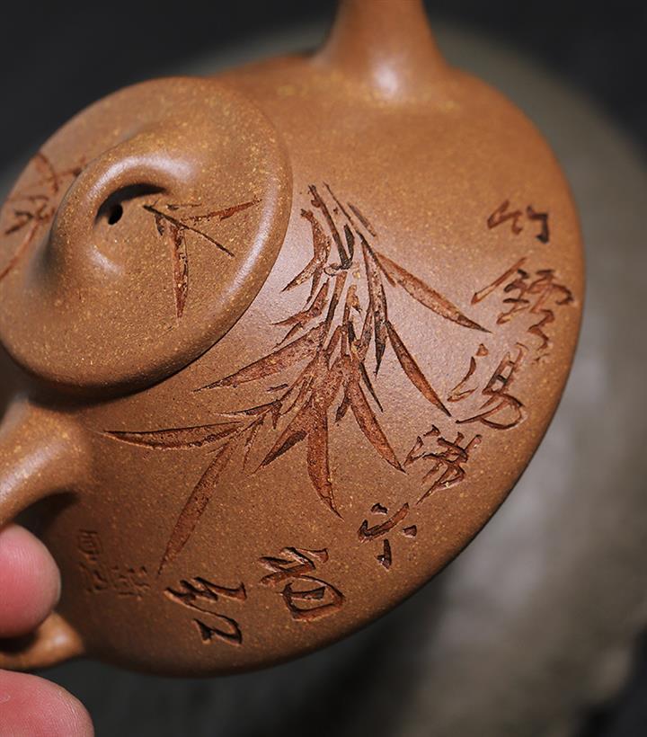 170cc/190cc原礦降坡泥/紫泥陶刻竹葉子冶石瓢茶壺POT9228