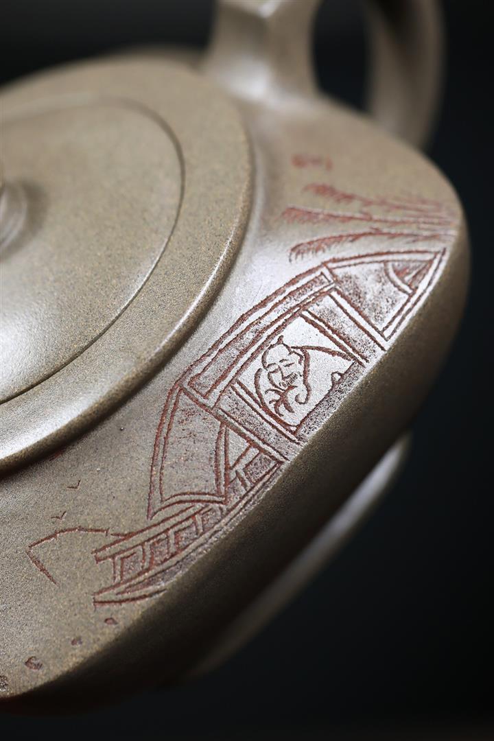 棗紅泥觀山漢瓦紫砂壺POT5884