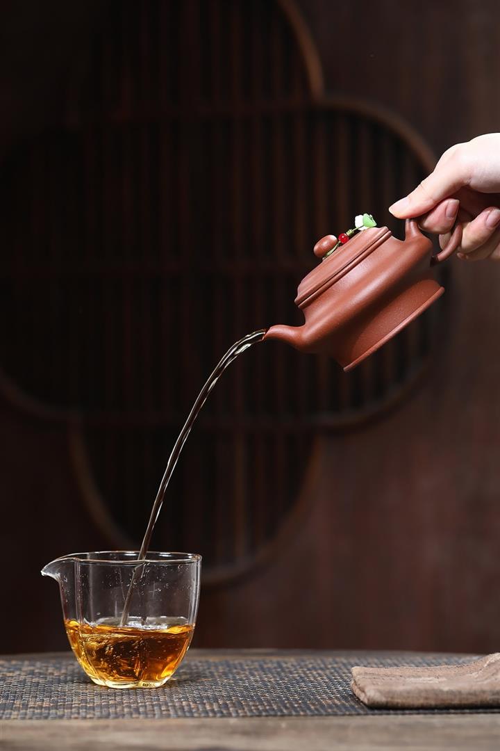【泥料特點】砂土氣重,似淳實農民,日久使用,漸露鋒芒,養成變化,溫潤莊重。紫砂是壹種雙重氣孔結構的多孔性材質,氣孔微細,密度高。用紫砂壺沏茶,不失原味,且香不渙散,得茶之真香真味。紫砂使用越久,壺身色澤越發光亮照人,氣韻溫雅。紫砂壺長久使用器身會因撫摸擦拭,變得越發溫潤光澤。
