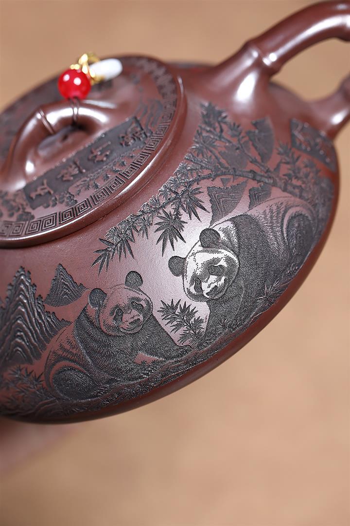 240cc原礦石紅刻繪熊貓竹瓢茶壺POT9276