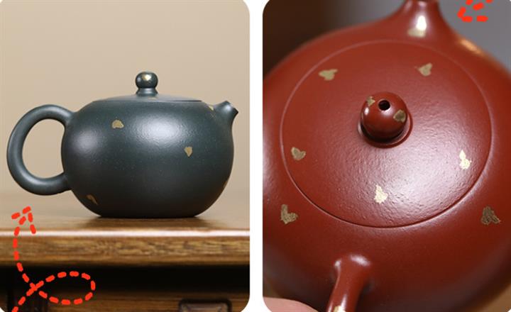 【尺寸】總直徑:11.2cm 口徑:3.2cm 總高:6.5cm;綠泥蘋果西施灑金總直徑:11.0cm 口徑:4.3cm 總高:7.0cm