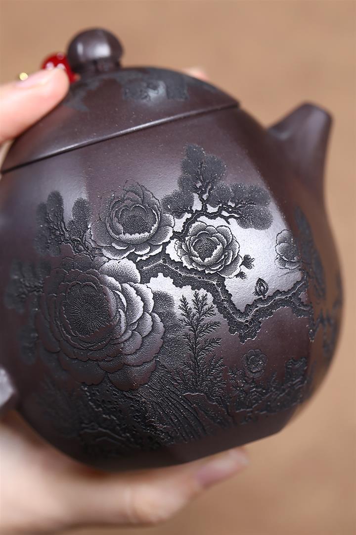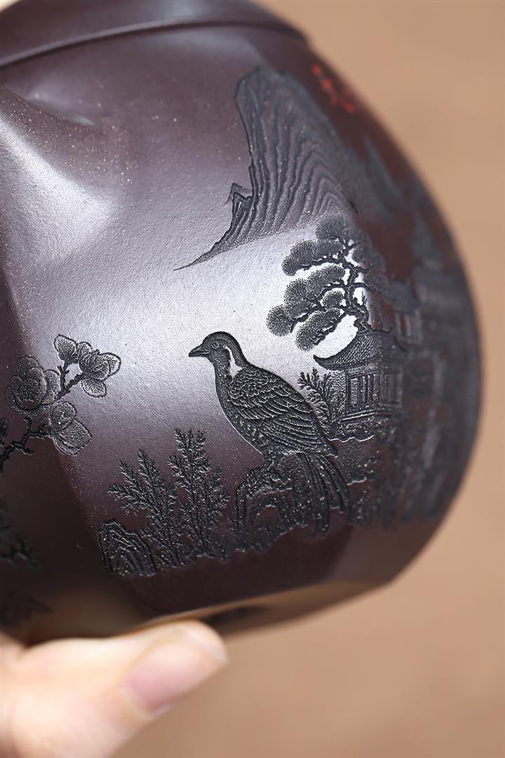 原礦紫朱泥手工鵲上枝頭蓮子茶壺POT7067