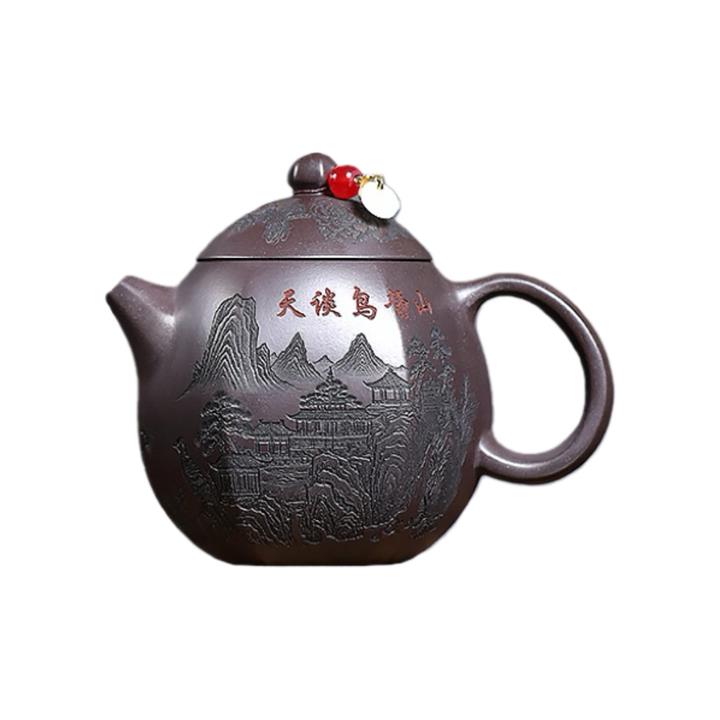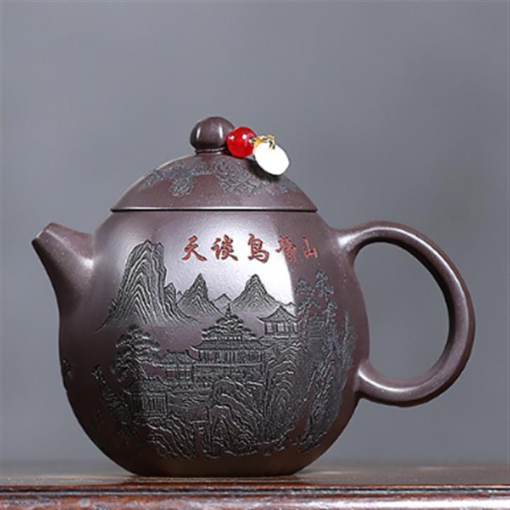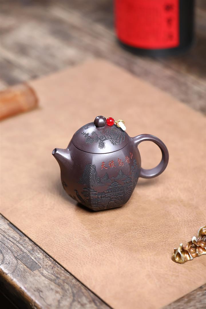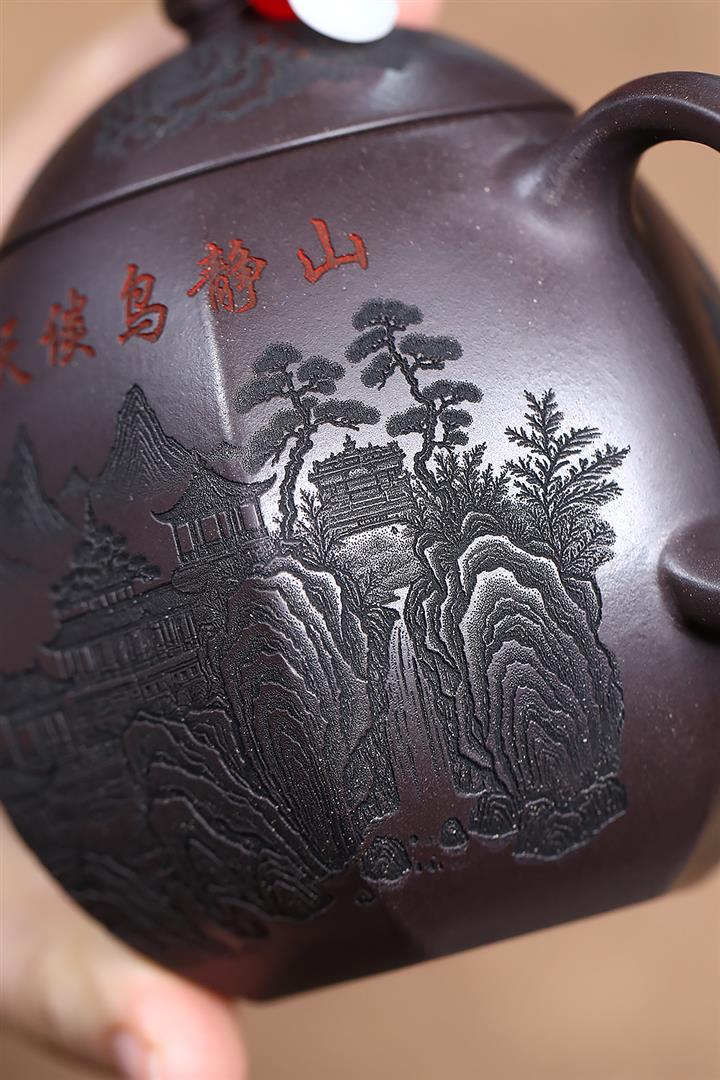 原礦百目紫泥手工描金寒江茶壺POT7071