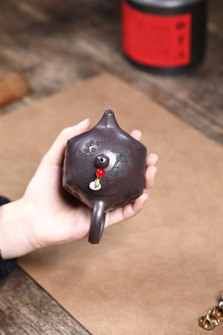 原礦百目紫泥手工描金明爐茶壺POT7073