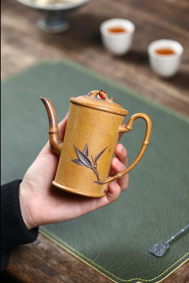 【作品介紹】此款壺形線條流暢,壺把,壺嘴,壺身壹氣呵成栩栩如生,是收藏把玩的好壺,泥料色澤古樸典雅,日久使用,漸露鋒芒,養成變化快,溫潤莊重,用其泡茶,使用的年代久,壺身就溫潤,泡出來的茶湯也就醇郁芳馨。