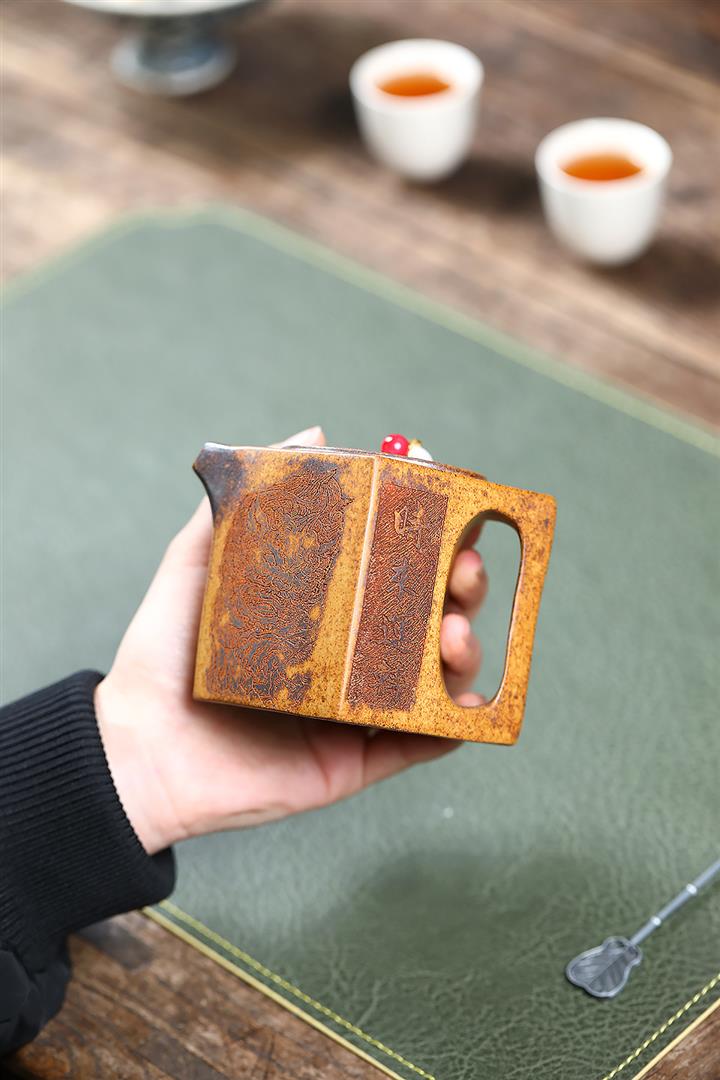 【泥料特點】砂土氣重,似淳實農民,日久使用,漸露鋒芒,養成變化,溫潤莊重。紫砂是壹種雙重氣孔結構的多孔性材質,氣孔微細,密度高。用紫砂壺沏茶,不失原味,且香不渙散,得茶之真香真味。紫砂使用越久,壺身色澤越發光亮照人,氣韻溫雅。紫砂壺長久使用器身會因撫摸擦拭,變得越發溫潤光澤。