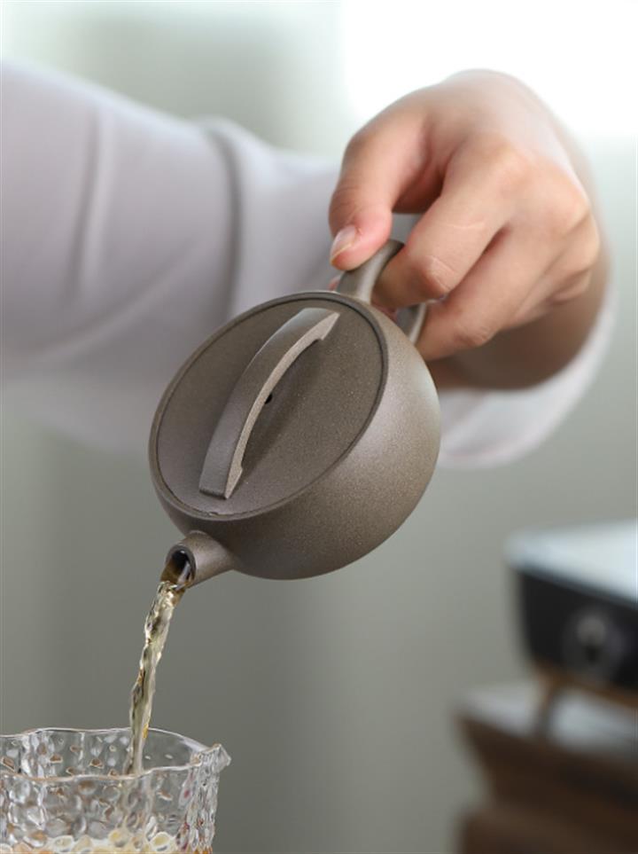 【泥料特點】砂土氣重,似淳實農民,日久使用,漸露鋒芒,養成變化,溫潤莊重。紫砂是壹種雙重氣孔結構的多孔性材質,氣孔微細,密度高。用紫砂壺沏茶,不失原味,且香不渙散,得茶之真香真味。紫砂使用越久,壺身色澤越發光亮照人,氣韻溫雅。紫砂壺長久使用器身會因撫摸擦拭,變得越發溫潤光澤。