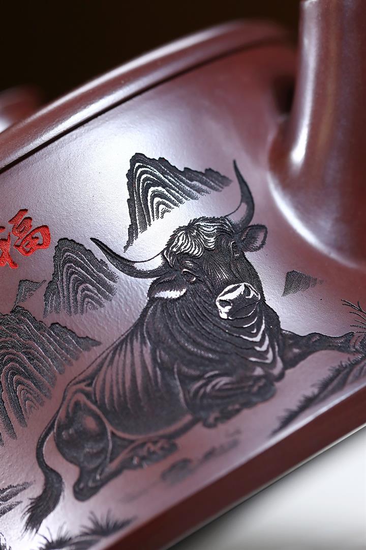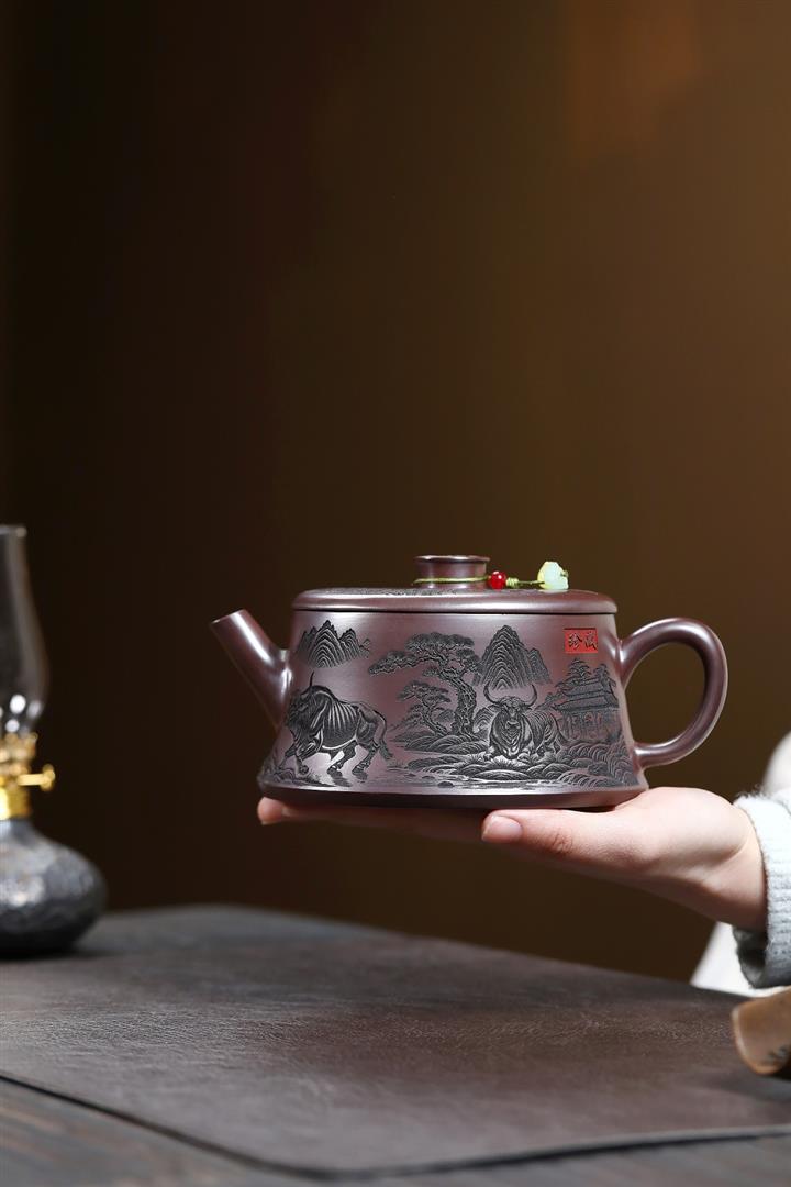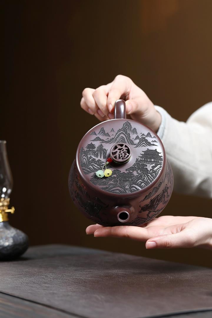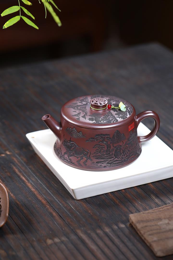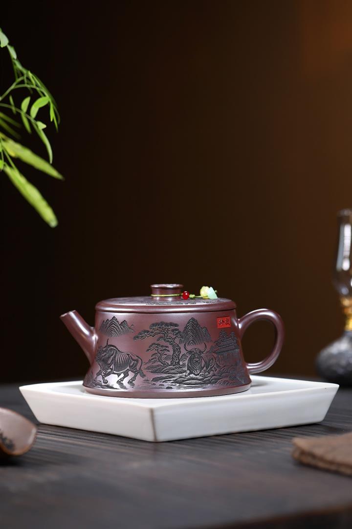 戌·紫玉金砂瑞獸蓮座紫砂壺POT6250