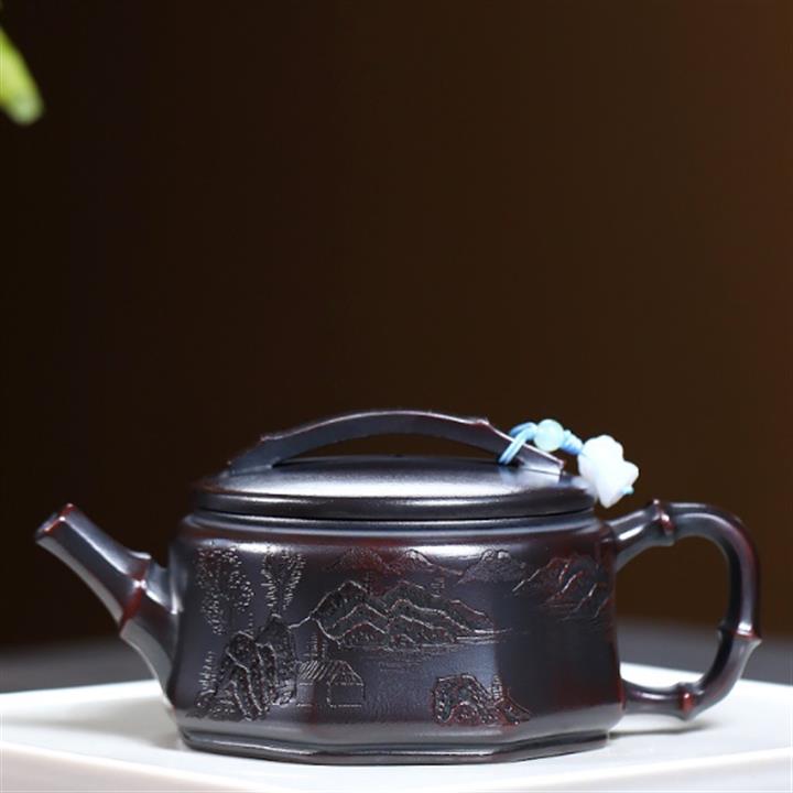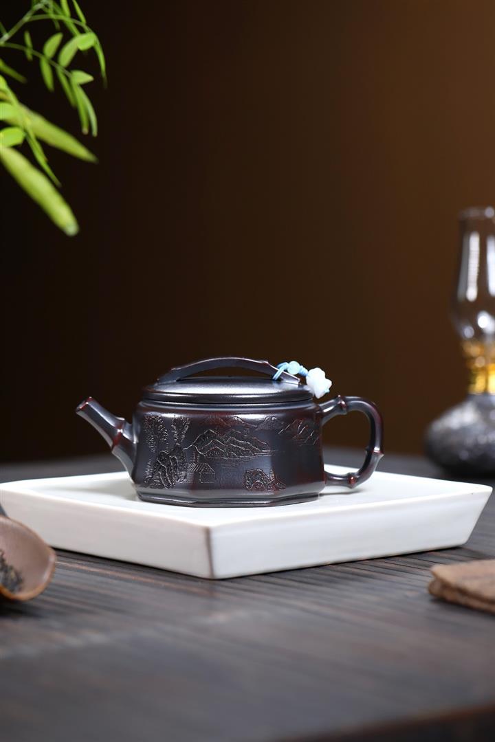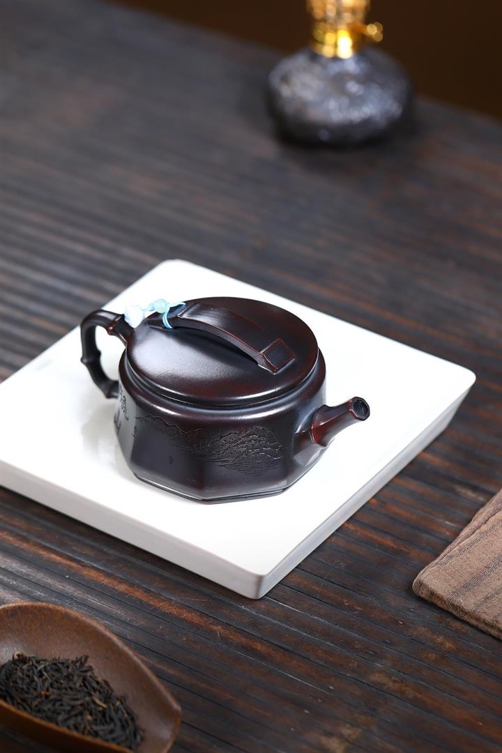 原礦大紅袍四方竹鼎紫砂壺POT5833