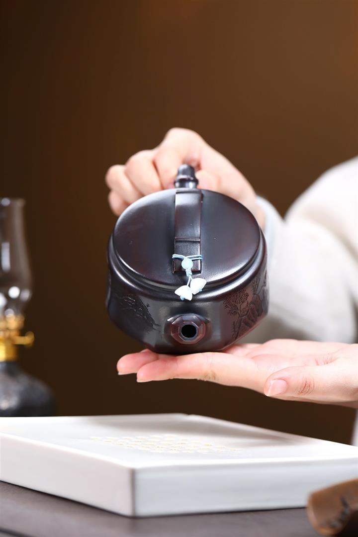 紫砂紫泥泥繪秦權紫砂壺POT5827