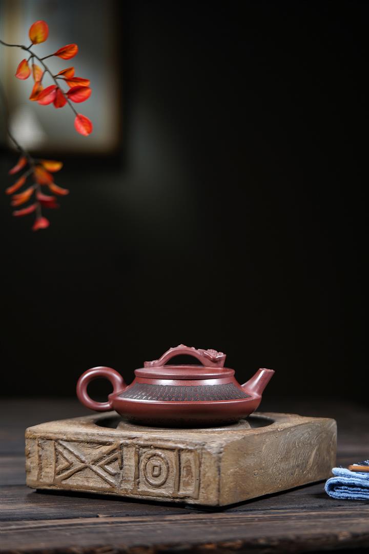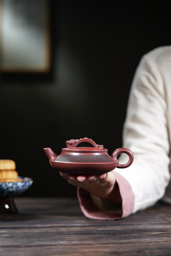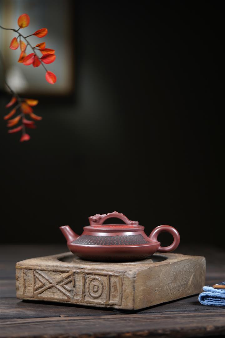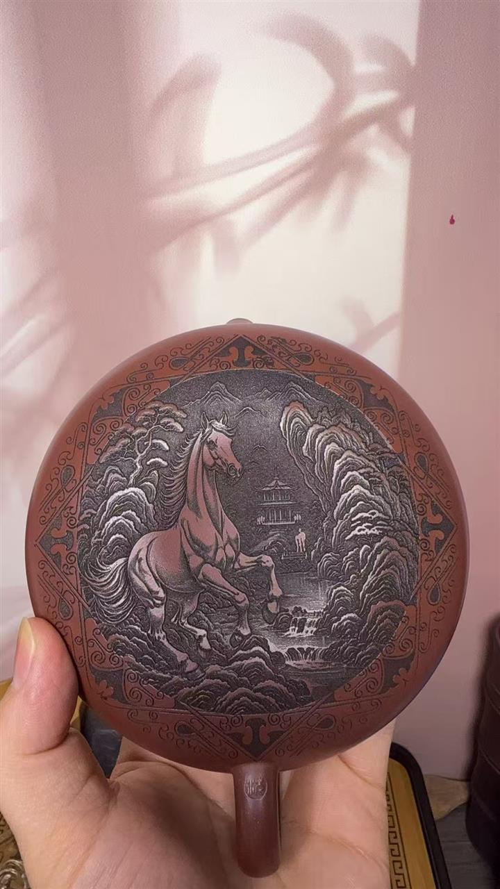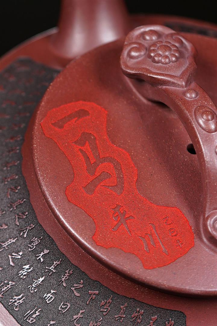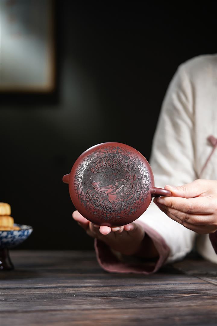 660cc原礦石紅泥滿刻山河鶴影茶壺POT8551