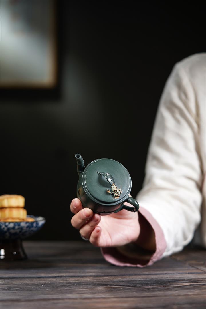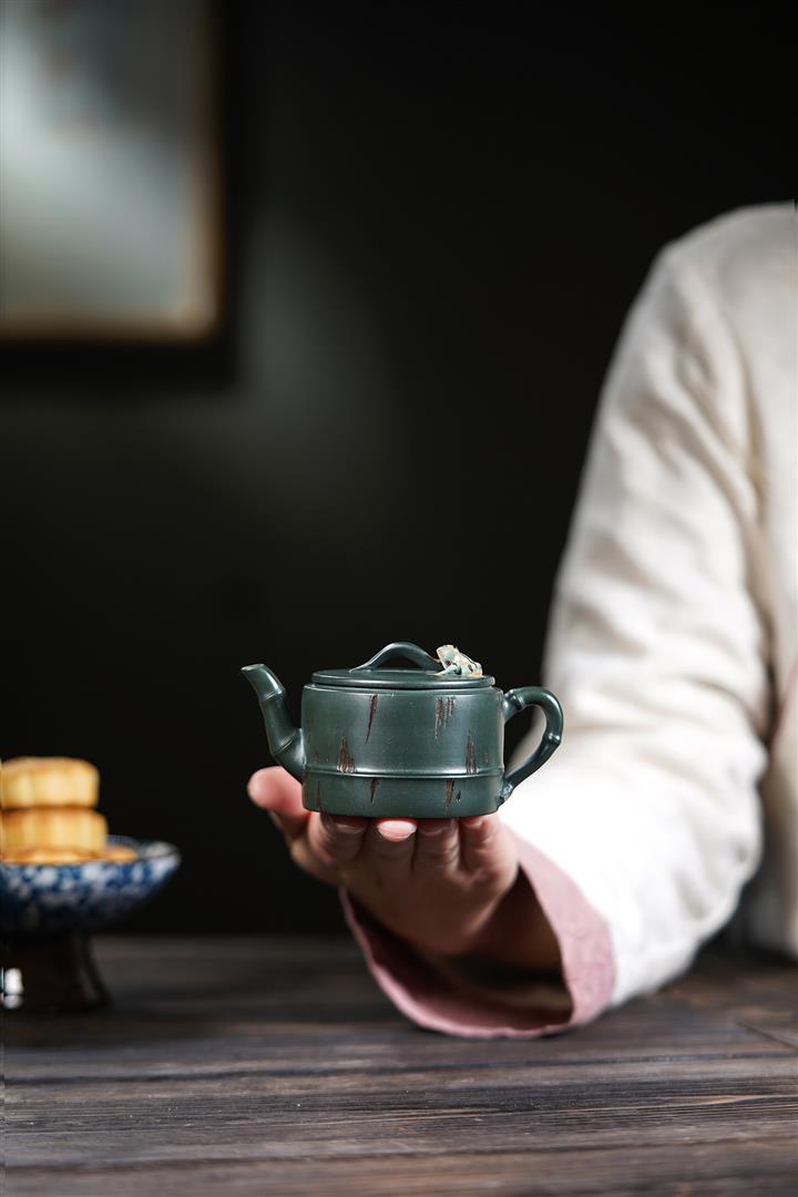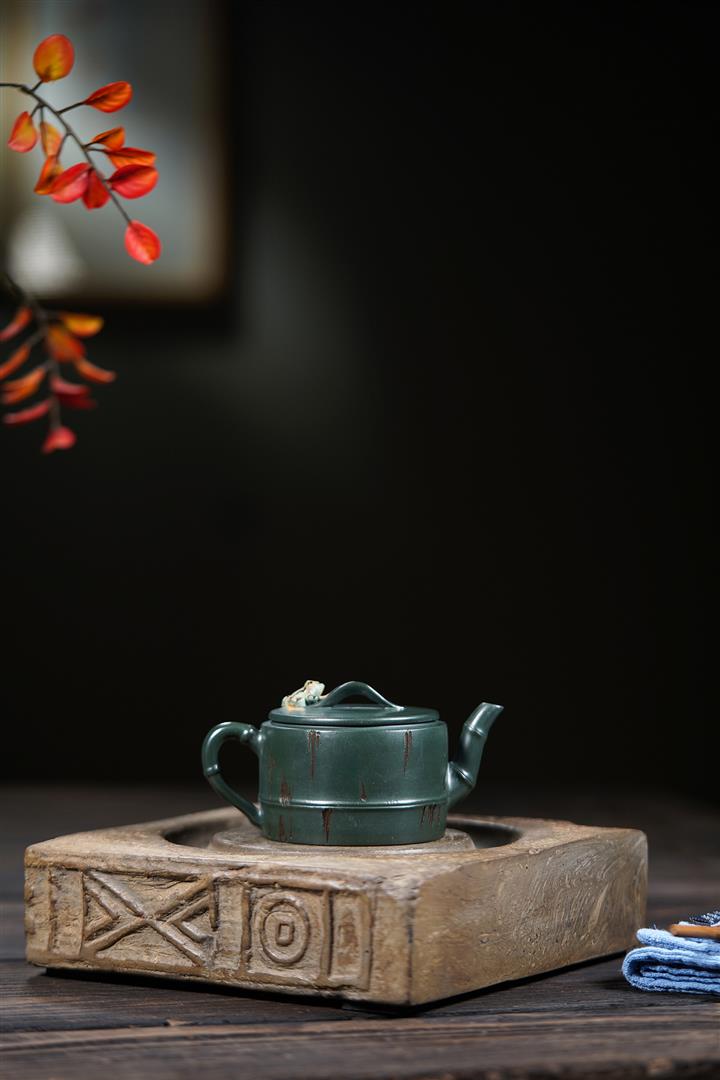 原礦蟹殼青手工四方雅竹茶壺POT6630
