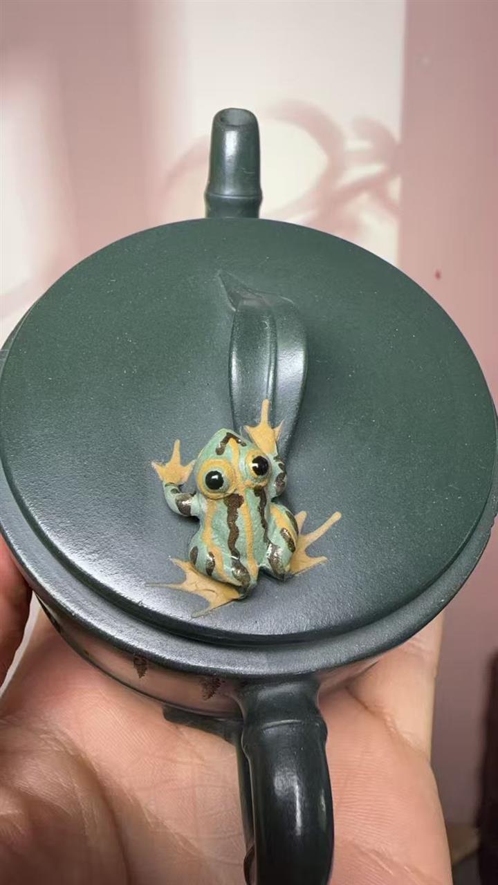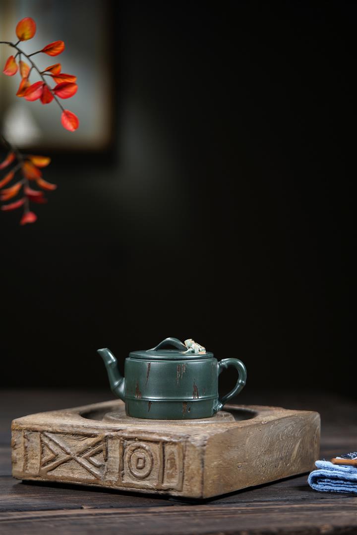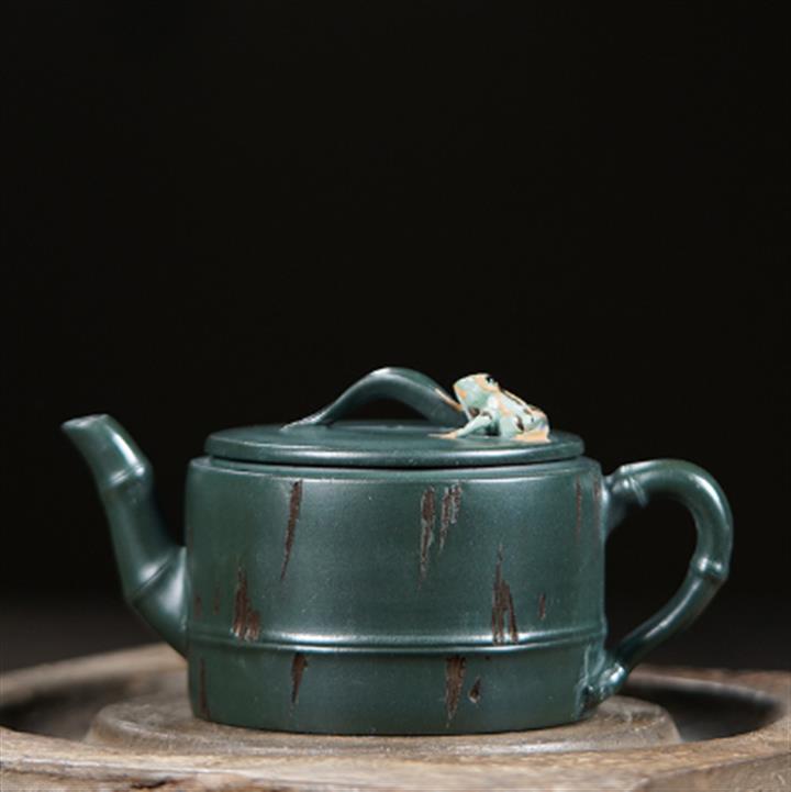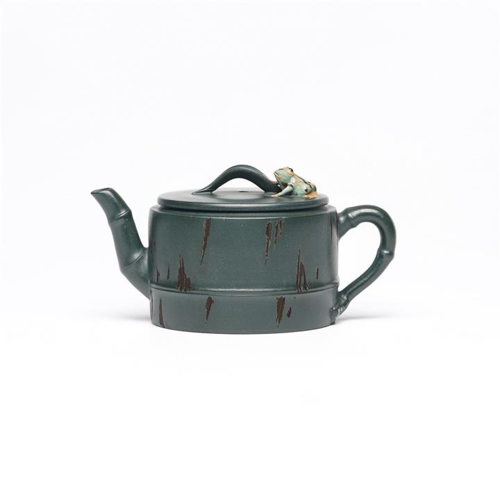 150cc原礦綠泥蛙趣竹節茶壺POT9341