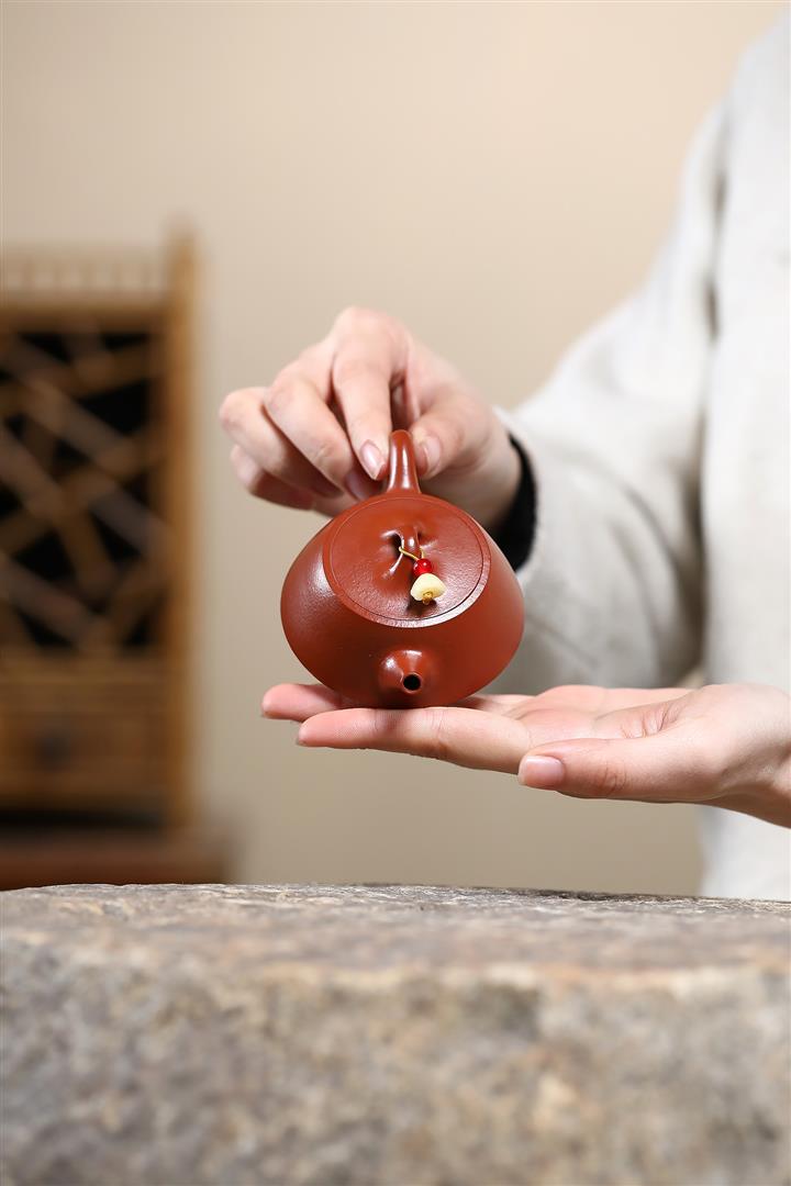 原礦赤金朱泥手工祥雲周盤茶壺POT6628