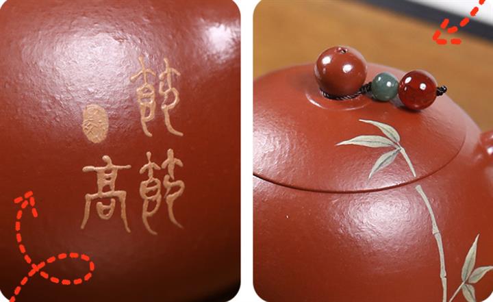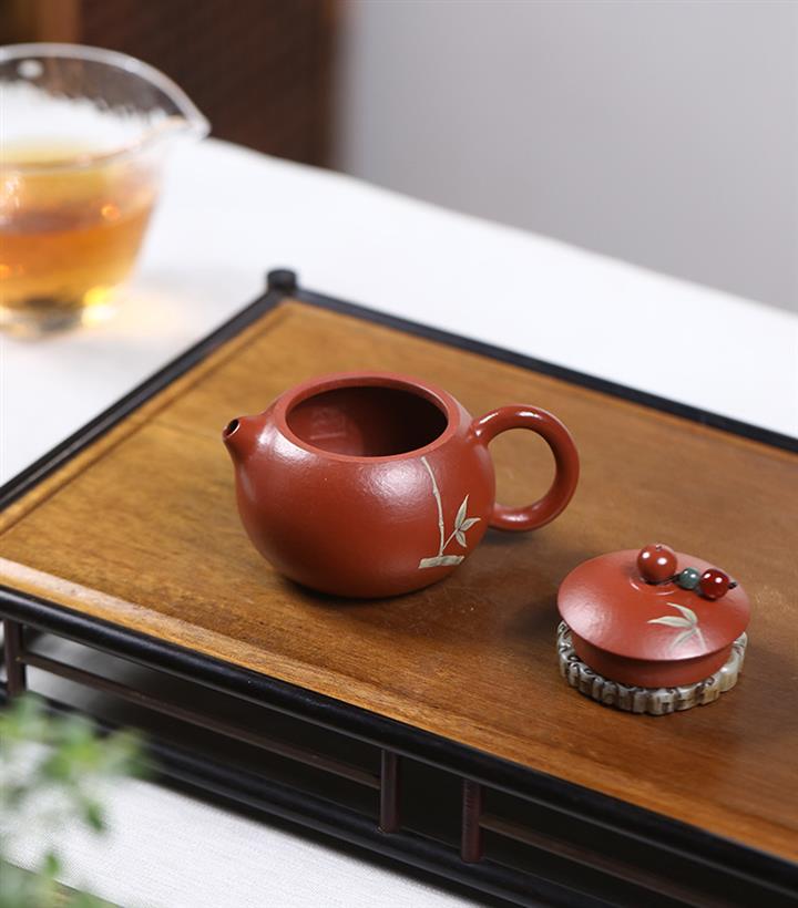 250cc原礦紅降坡虛懷竹影竹鼎泡茶壺POT9383