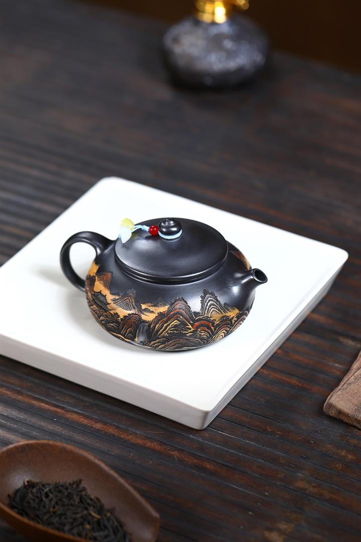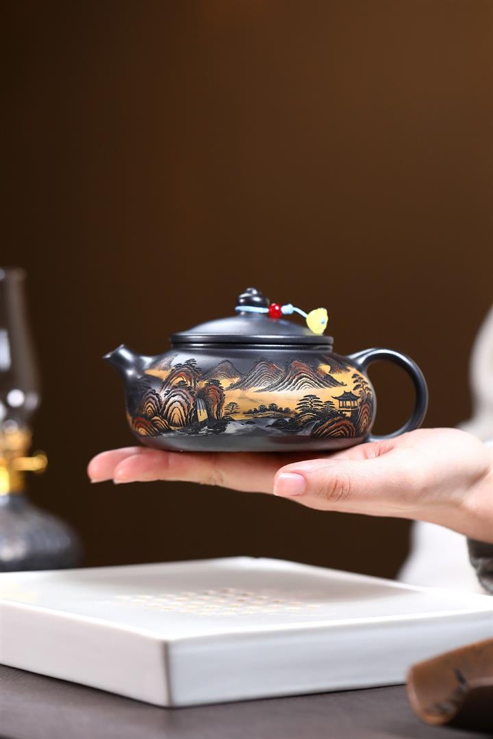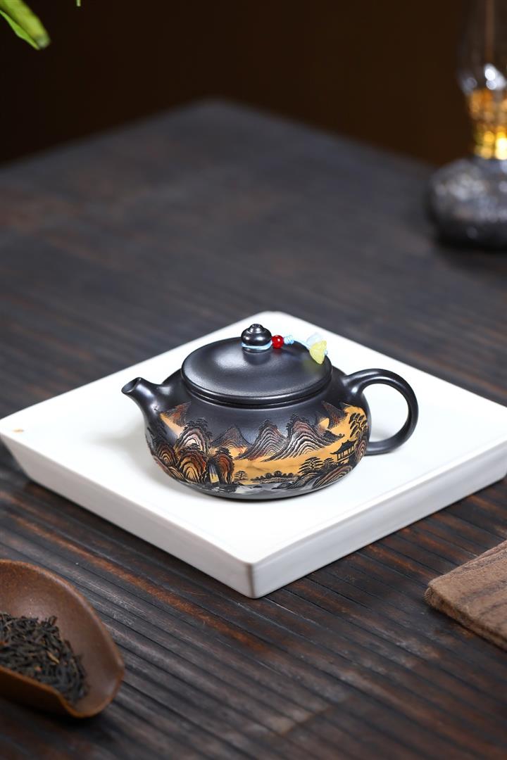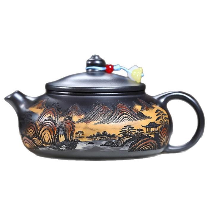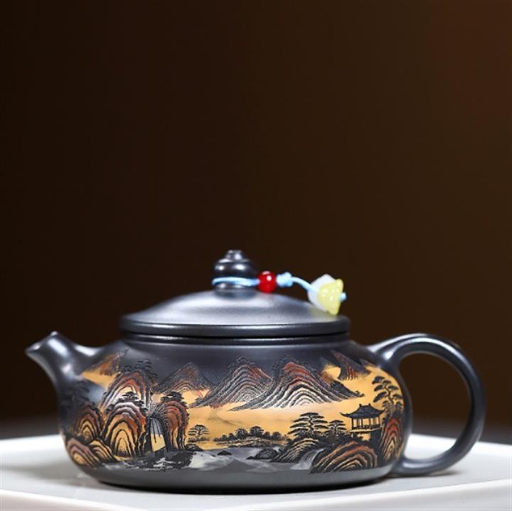 240cc原礦玄鐵石黃錦繡寒江茶壺POT9348