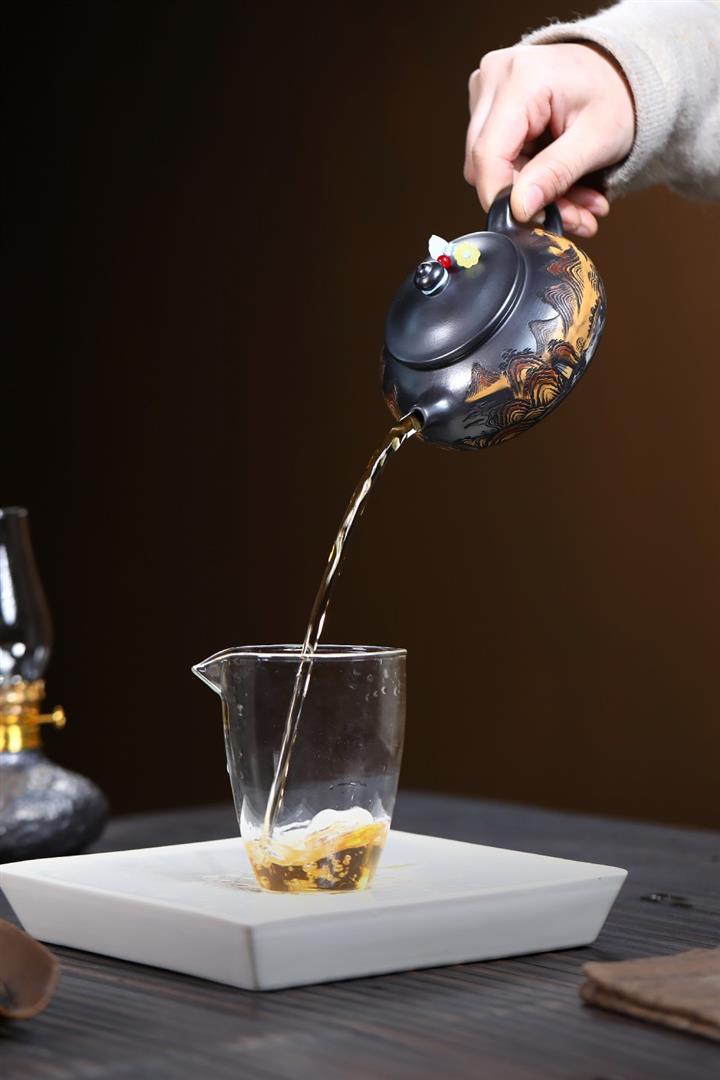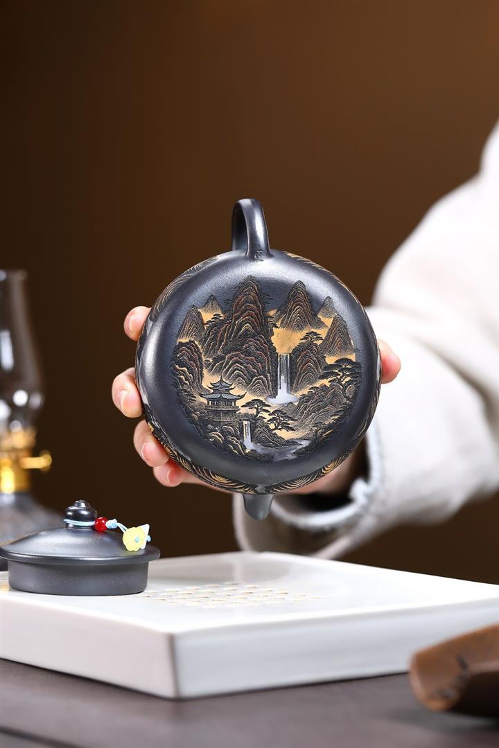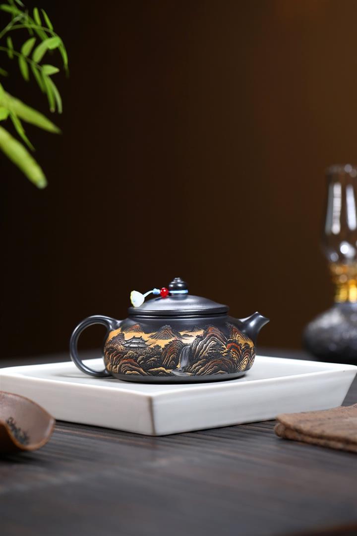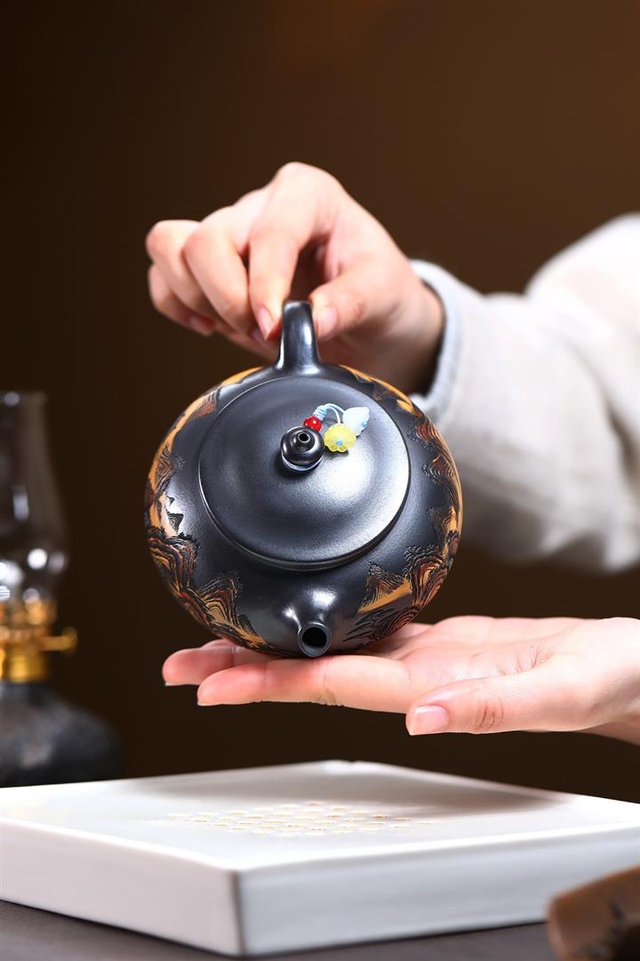 240cc原礦玄鐵石黃錦繡寒江茶壺POT9348